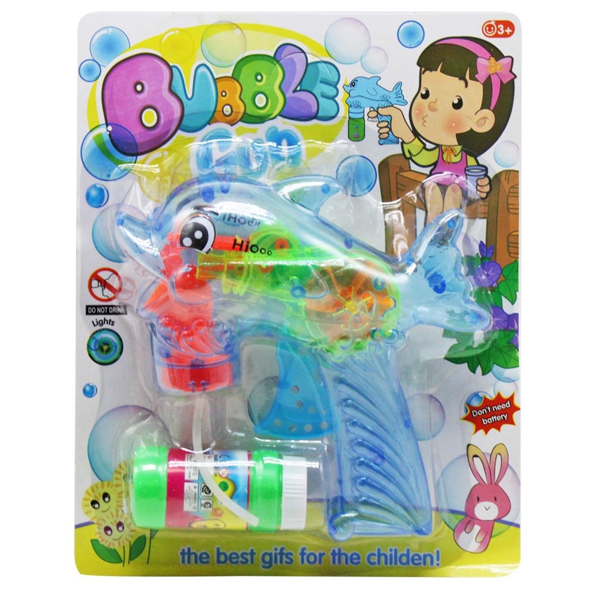 Пістолет виконаний у вигляді прозорого дельфіна. Для роботи іграшки не потрібні батареї, механізм спрацьовує при натисканні на курок. У комплекті є пістолет та 1 пляшечка мильного розчину. Інструкція використання є на упаковці. Виконаний із якісного пластику. Для дітей віком від 3-х років.