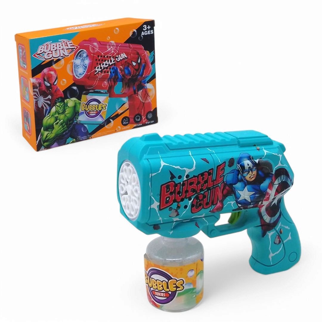 Пістолет для пускання бульбашок у стилі героїв Марвел – це яскрава та захоплива іграшка для дітей. Оснащений ефектним підсвічуванням, яке робить процес ще веселішим. Флакон з мильним розчином зручно прикручується до пістолета, забезпечуючи просте та чисте використання. Ідеально підійде для ігор на вулиці та дитячих свят.