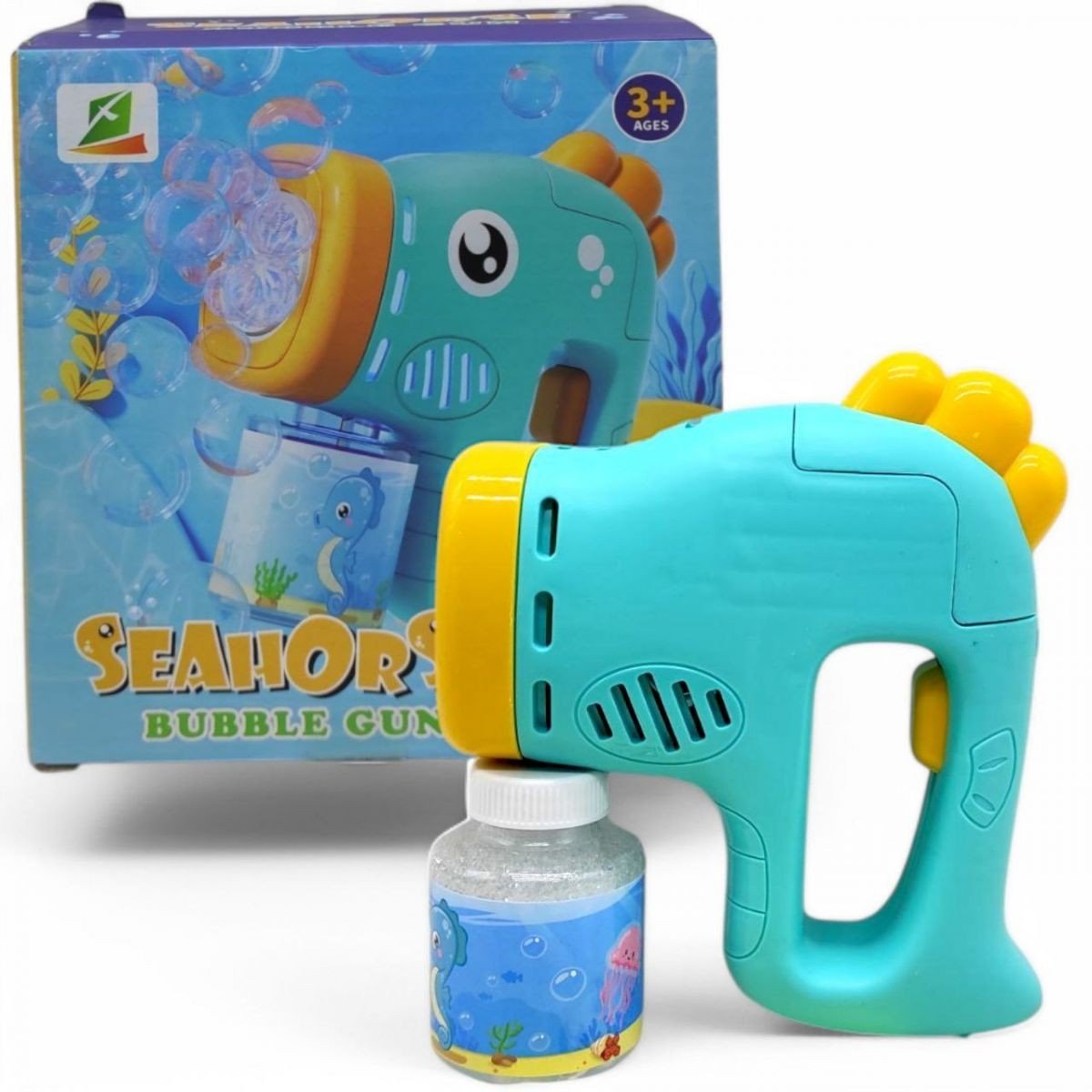 Опис Пістолет з мильними бульбашками "Морський коник" на батарейках, підсвічування