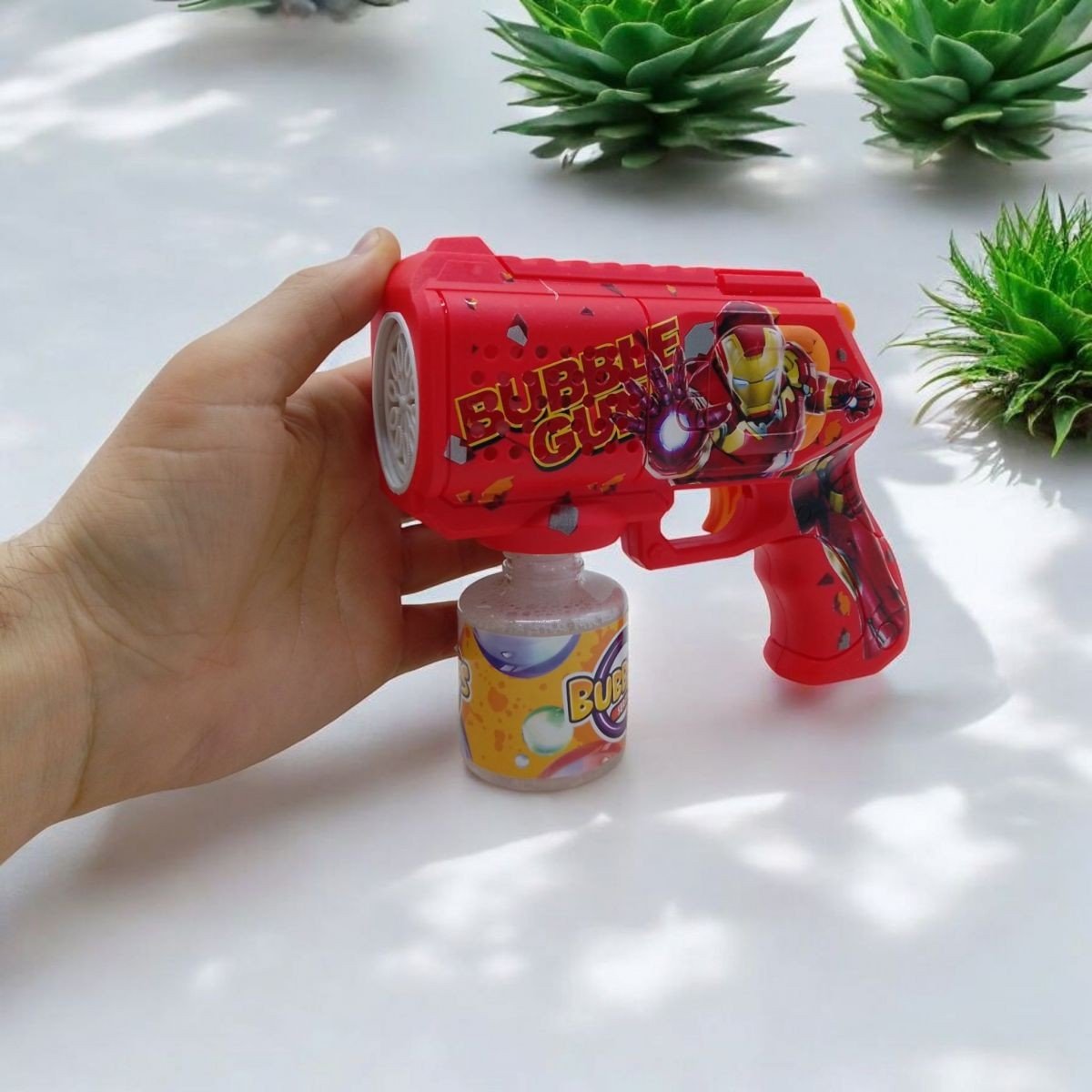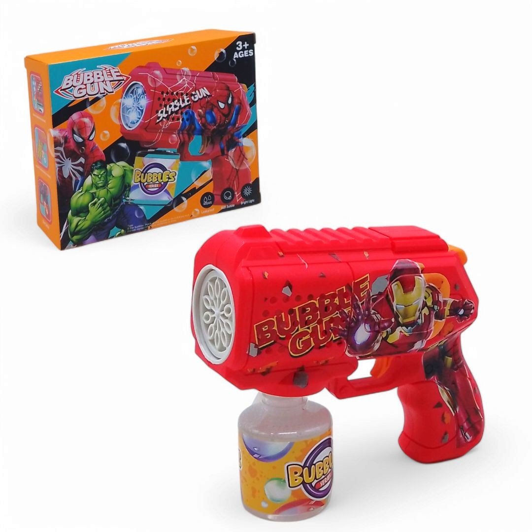 Пістолет для пускання бульбашок у стилі героїв Марвел – це яскрава та захоплива іграшка для дітей. Оснащений ефектним підсвічуванням, яке робить процес ще веселішим. Флакон з мильним розчином зручно прикручується до пістолета, забезпечуючи просте та чисте використання. Ідеально підійде для ігор на вулиці та дитячих свят.