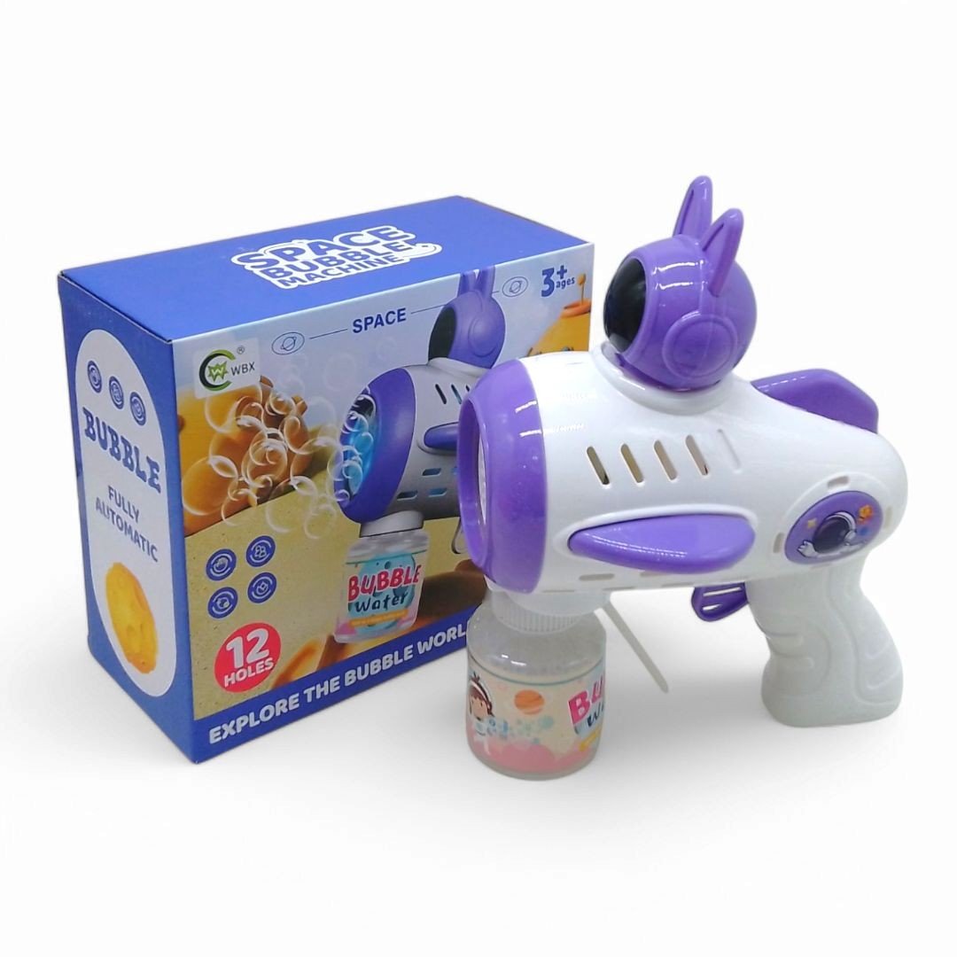 Опис Пістолет з мильними бульбашками "Зайчик-космонавт", на батарейках (бузковий)