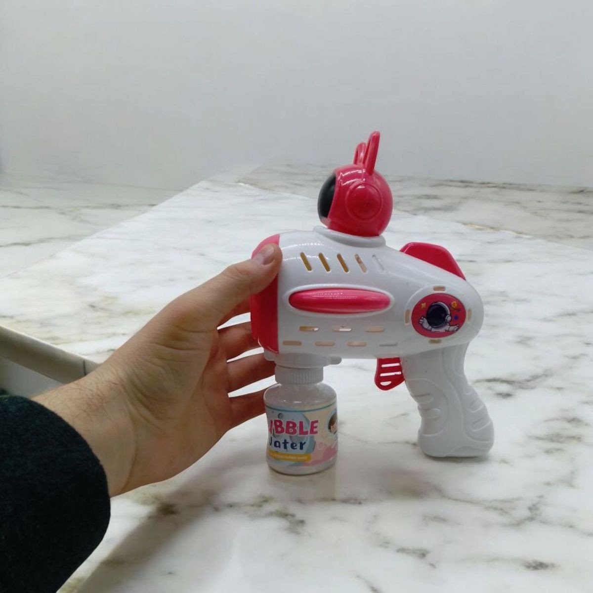 Пістолет для пускання мильних бульбашок — яскрава іграшка, що подарує море радості! Просто прикрути баночку з розчином до корпусу, натисни на курок — і навколо закружляє купа бульбашок. Іграшка оснащена підсвіткою, що робить гру ще цікавішою. Чудовий варіант для прогулянок на свіжому повітрі чи веселих вечірок! Працює від 4-х батарейок АА (немає в комплекті).