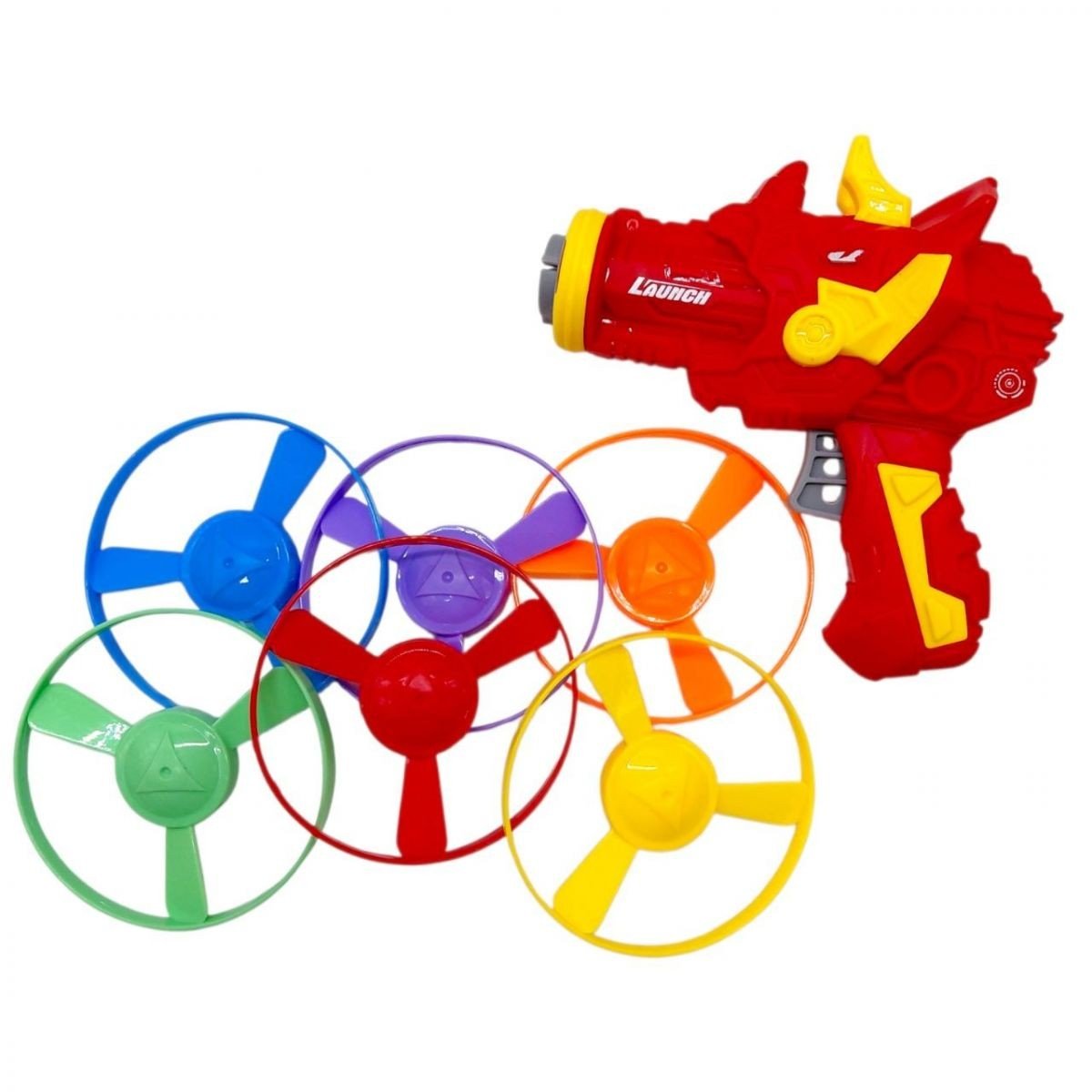 Пістолет -запускачка "Динозавр", 6 дисків у пакеті (ЧЕРВОНИЙ)