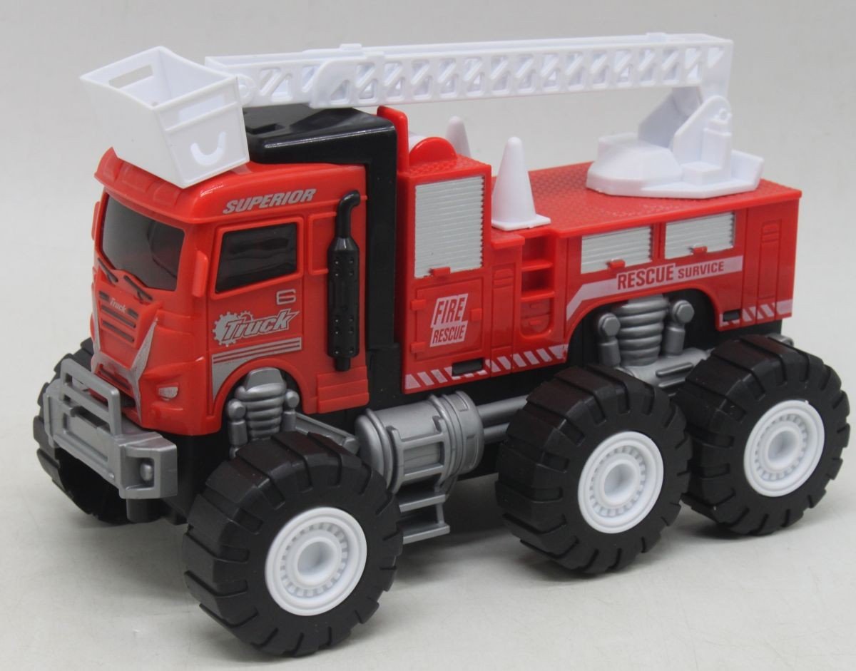 Машинка у вигляді пожежної машини. 3 пари коліс. Діаметр колеса – 5 см. Машина інерційна, має рухомі деталі. Яскрава та легка машинка виготовлена з безпечного пластику та має прекрасні деталі, що роблять її реалістичною та привабливою для дітей. Розмір - 21 х 11 х 12 см
