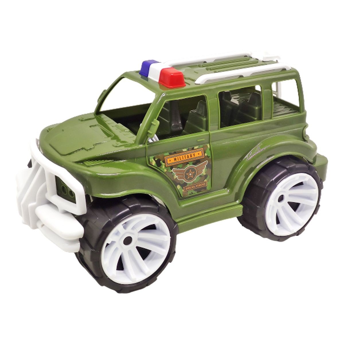 Пластикова машинка-позашляховик. Досить великого розміру: 30х18х18 см, діаметр коліс – 8 см. Виконано з якісного та міцного пластику. Для дітей віком від 3-х років.