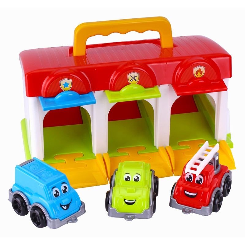 Ігровий набір "Гараж" включає: 3 машинки, гараж, додаткові деталі для підʼїзних доріжок. Розмір машинки 9х5,5х5 см. Набір виконаний з якісних та безпечних матеріалів. На даху гаража є спеціальна ручка, поклавши всі деталі у гараж та закривши двері на бір можна легко та зручно переносити. Розмір гаража 26х14х12 см.