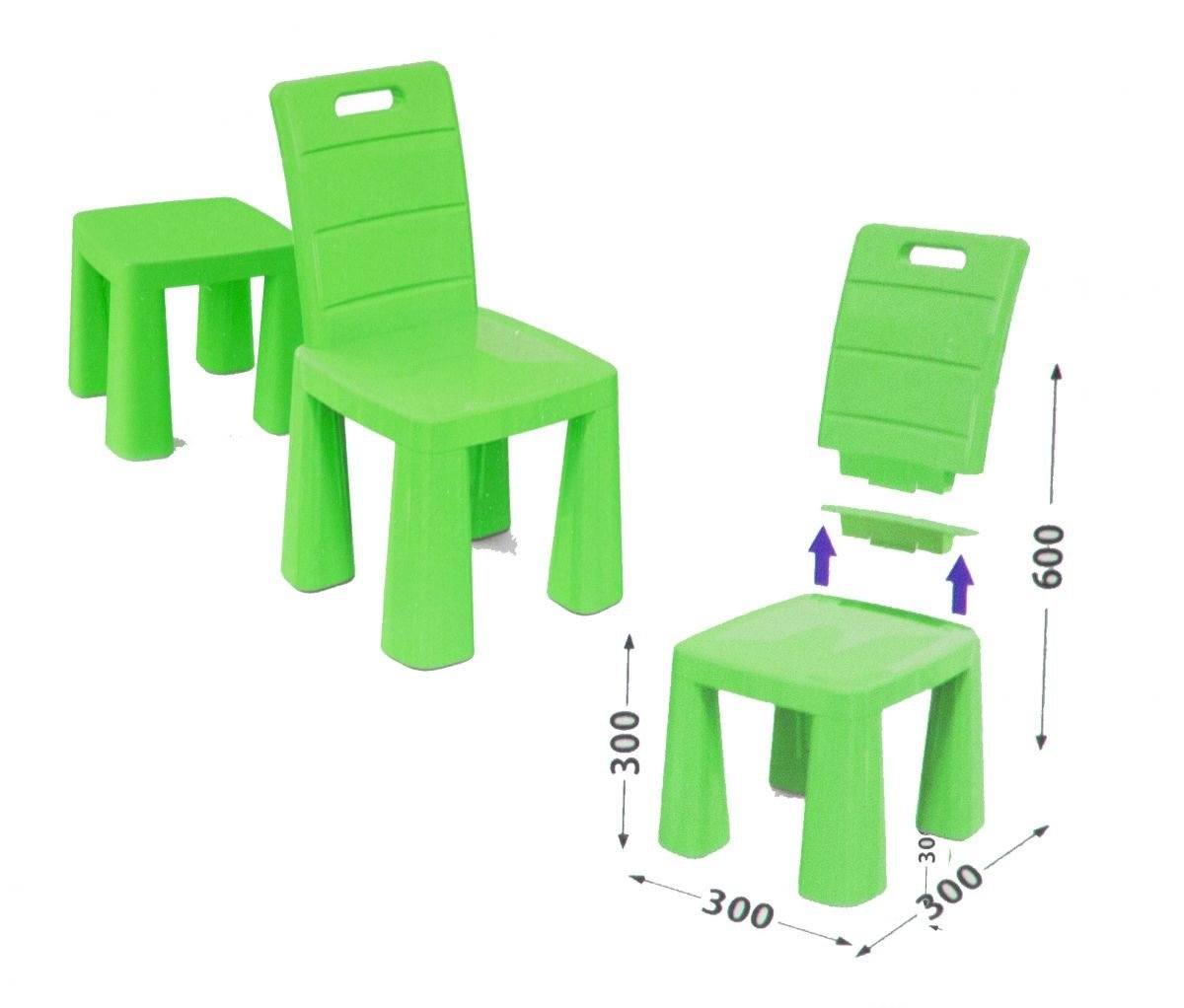 Яскравий пластиковий стільчик. Легко складається. Виготовлений з якісного пластику (поліпропілену). Можна збирати як стільчик зі спинкою, або як звичайний табурет. Розмір стільчика: 30 х 60 х 30 см.