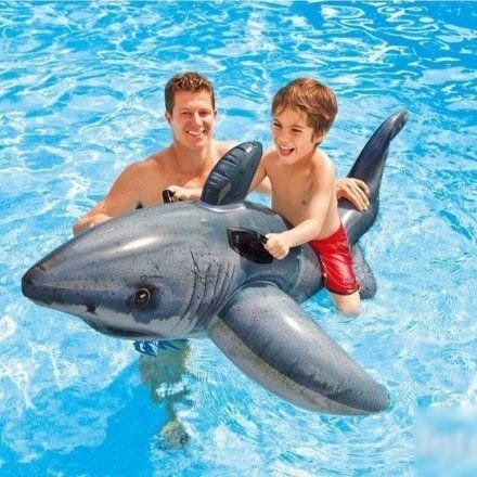 Даний пліт зручний тим, що дуже стійкий на воді, й дитина сміливо може сидіти на спині акули. Практичність конструкції полягає в пластикових ручках-тримачах.