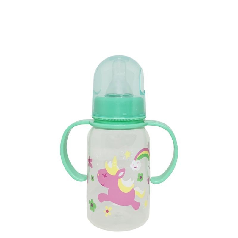 Пляшка пластикова з соскою. З ручками. Обсяг пляшечки 150 мл. Виконана з якісного і безпечного матеріалу.