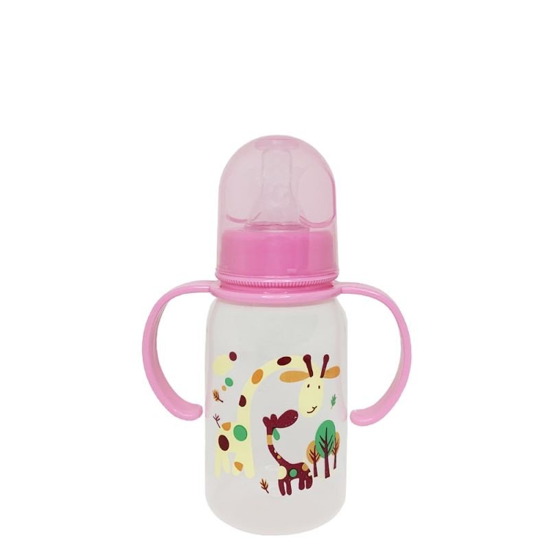 Пляшка пластикова з соскою. З ручками. Обсяг пляшечки 150 мл. Виконана з якісного і безпечного матеріалу.