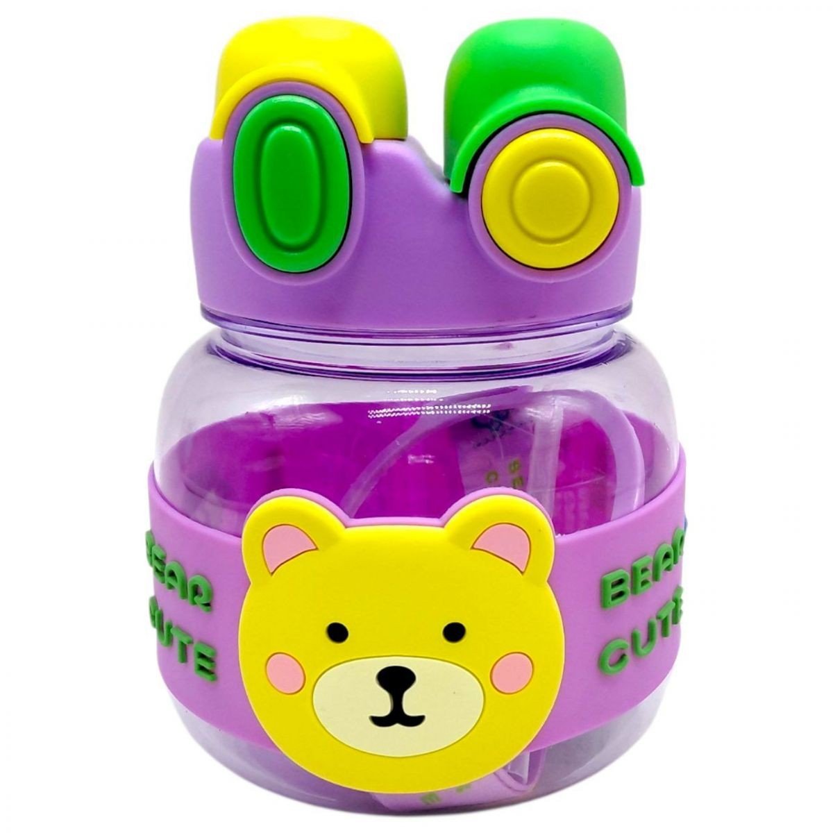 Пляшка для води 1000 мл, пластикова, ремінець, трубочка, шийка, в пакеті (ФІОЛЕТОВА)