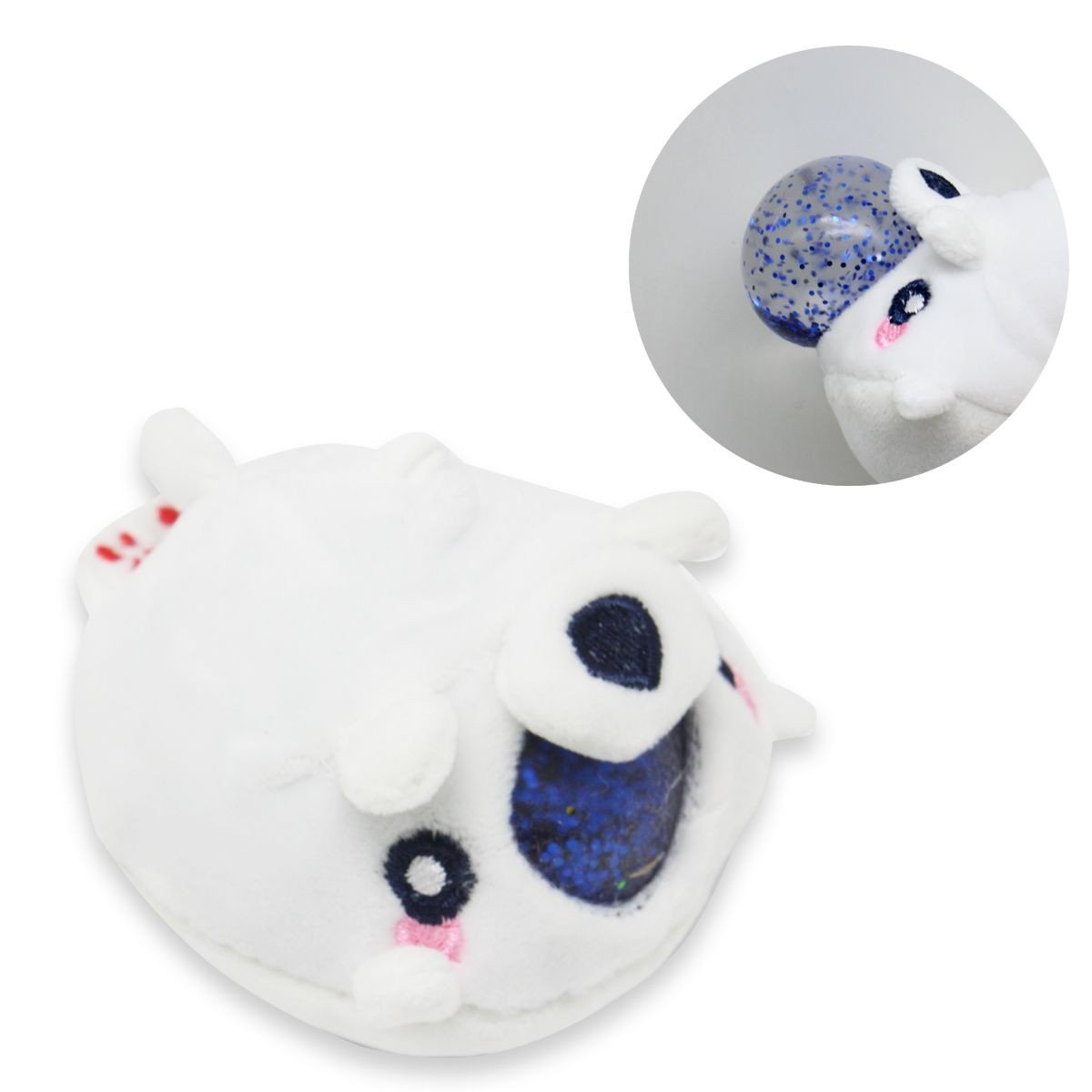 Оригінальна плюшева іграшка-антистрес, усередині якої знаходиться гумова кулька з рідиною, в якій плавають блискітки. Якщо стиснути іграшку в руці, кулька вилізе назовні. Іграшка чудово заспокоює нерви і допомагає зняти стрес, дуже приємна на дотик. Розмір: 10х7х6 см.