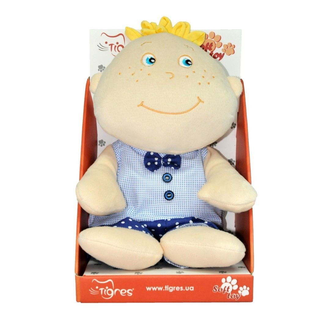 Бренд: TIGRES Упаковка: Пакет Колір: Бежевий, синій Вага з упаковкою: 360 г Габарити в упаковці: 16 x 28 x 18 см Країна виробник: Україна Матеріал: Комбінований Комплектація: Плюшевая кукла