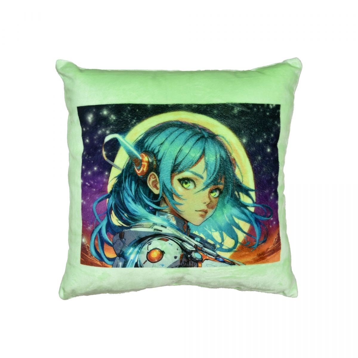 Опис Подушка плюшева "Аніме, дівчина у мистецькому світі" розмір 30*30 см зелена