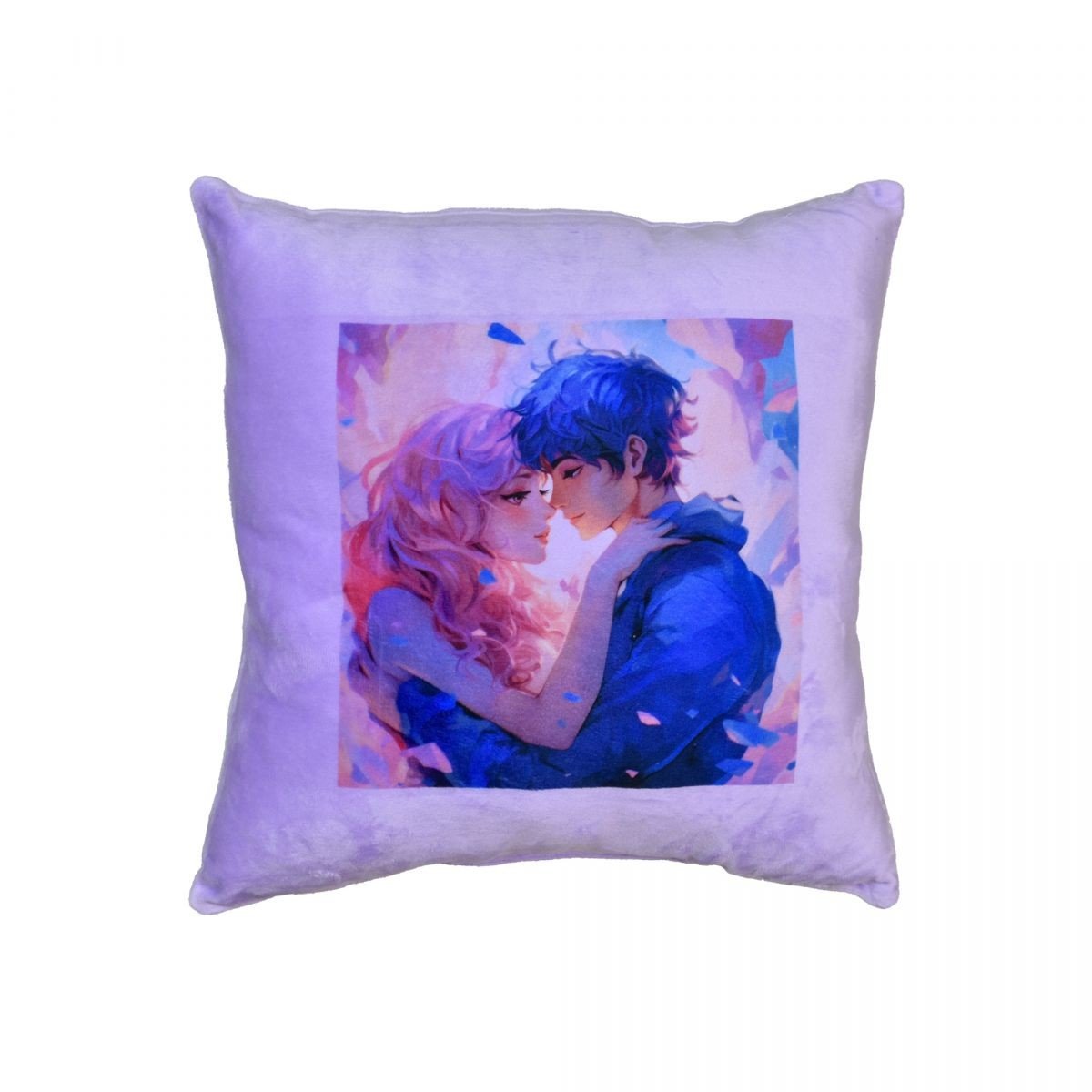 Опис Подушка плюшева "Аніме. Подорож у світ кохання" розмір 30*30 см фіолетова