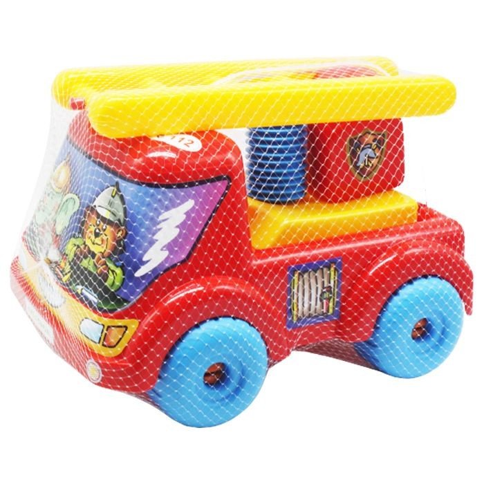 Яскрава пластикова машинка. Є підйомні сходи та трубка для накачування води. На кабіні є яскравий малюнок із звірятками-водіями. Розмір машинки: 33х21х23 см.