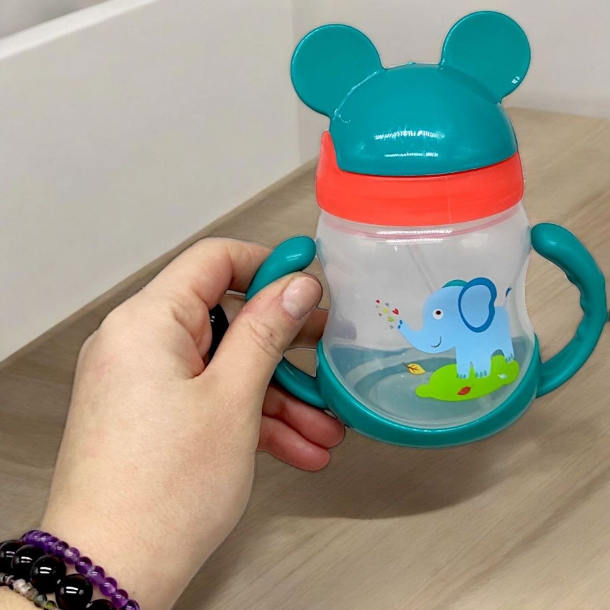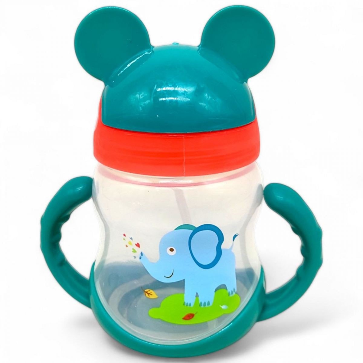 Поїльник з трубочкою (250 мл) - ідеальний вибір для малюків! Зручні ручки дозволяють легко тримати його навіть маленьким дітлахам, а трубочка робить процес пиття простим. Кришечка у вигляді вушок Міккі Мауса надає пляшці оригінального і веселого вигляду, який сподобається всім дітям. Відмінно підходить для використання вдома чи на прогулянці.