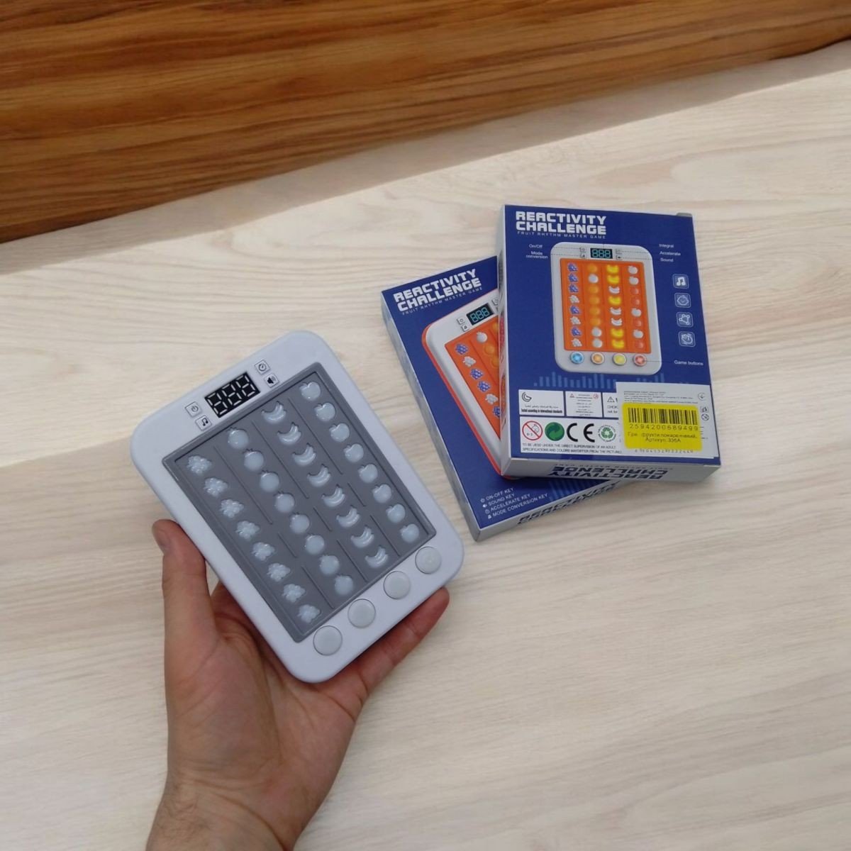 Цікава музична ритм-гра. Виконана у формі невеликої консолі. Завдання гравця - вчасно натискати на кнопки дотримуючись вказівок LED-індикаторів (індикатор поступово опускається до кнопки, і коли наблизиться впритул - потрібно кнопку натиснути). Звуковий супровід створює атмосферу справжнього музичного шоу. Гра має 7 рівнів (перемикаються кнопкою із зображенням ноти) та 3 швидкості (перемикаються кнопкою із зображенням таймера). Можна регулювати гучність (кнопка із зображенням динаміка). Розмір консолі - 15х11х2,3 см. Працює від 3-х батарейок ААА (немає в комплекті).