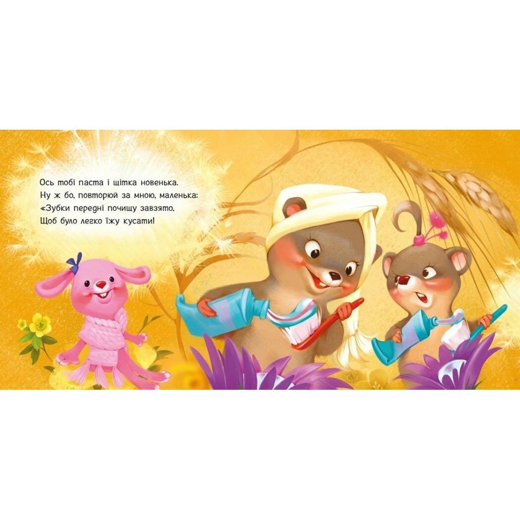Серія "Потрібні книжки" - це корисні книжки для найменшеньких. Грайливі віршики про життя звірят допоможуть малюку легко виконувати чимало складних дитячих справ і завдань.А в цій книзі мале мишеня навчить дитину залюбки чистити зубки. Виготовлено з цупкого картону. Для дітей 1-3 років.