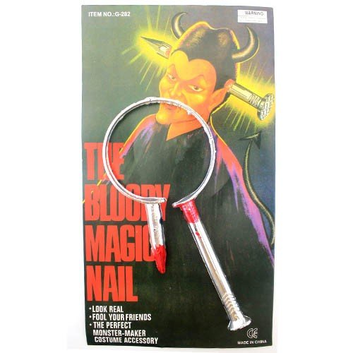 Прикол "Гвоздь в голові". Набір для розіграшу друзів. Гвоздь складається з 2-х частин, які знаходяться на різних сторонах обруча. Одягнувши на голову створюється відчуття справжнього цвяха, що пронизав і стирчить в голові.