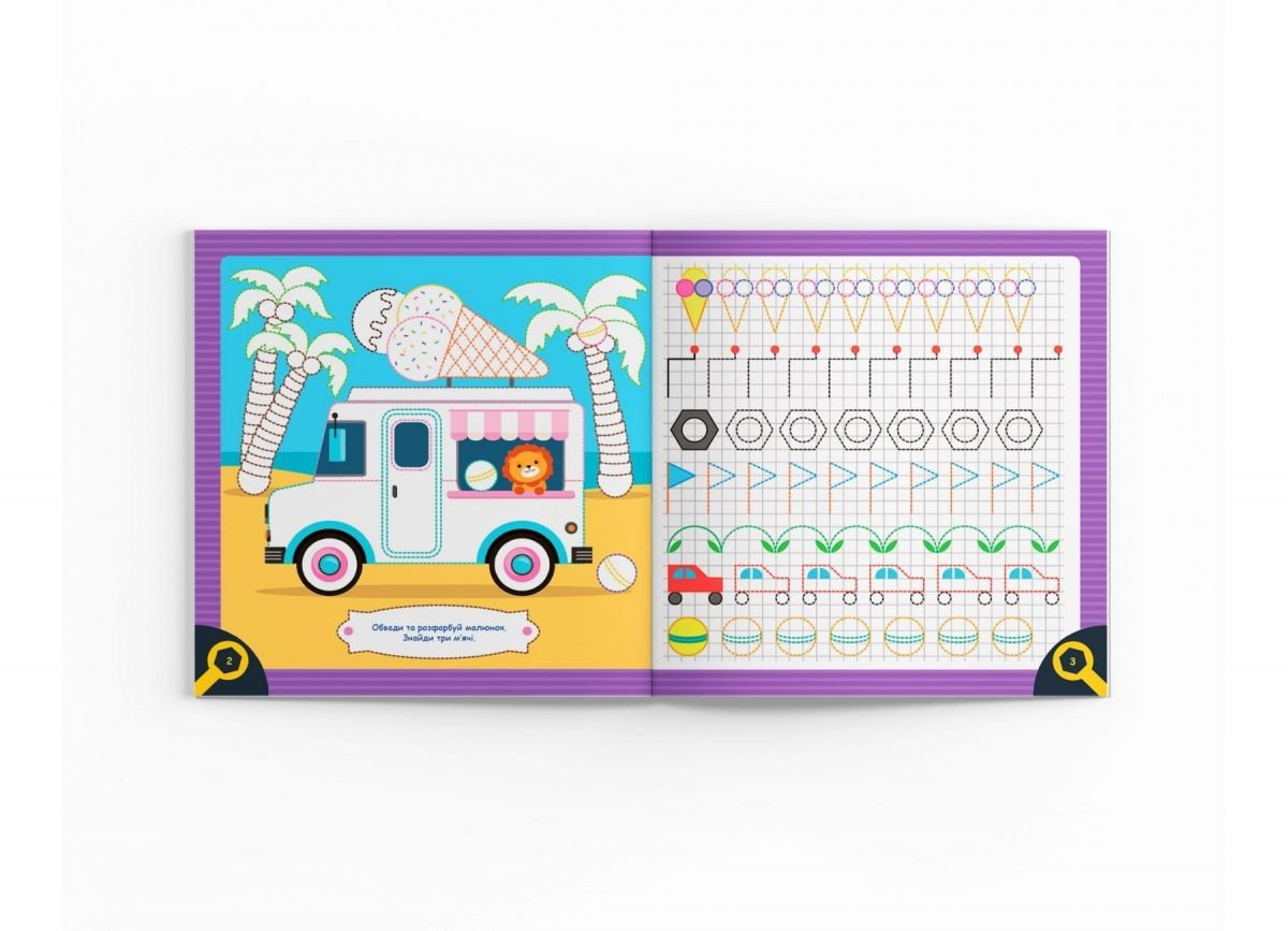 Прописи-тренажер, на сторінках яких можна знайти 90 цікавих завдань із елементами розмальовки. Дитина зможе навчитися малювати різноманітні фігури та обʼєкти, обводячи пунктирні лінії олівцем або маркером. Яскраві ілюстрації обовʼязково привернуть увагу дитини.
