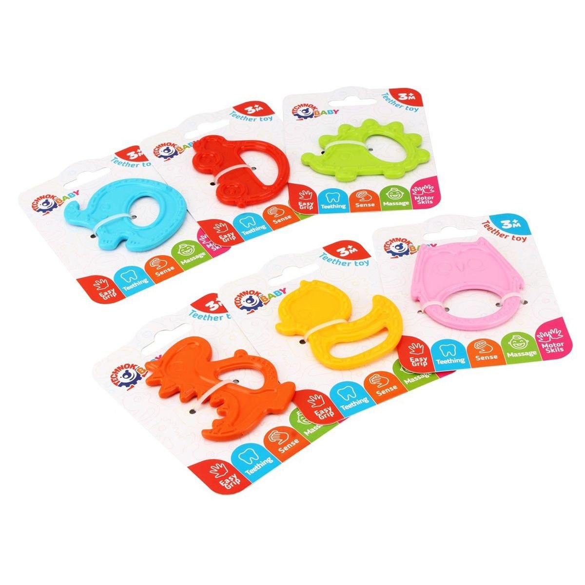 Прорізувач міцний, гнучкий та абсолютно безпечний для малюка. Особлива форма дозволяє дитині самостійно тримати іграшку однією рукою. Допоможе зняти дискомфорт під час прорізування зубів. Удосконалюють дрібну моторику і координацію, зір, увагу. Різні види иа кольори. Розмір - 6,5 х 8 см.