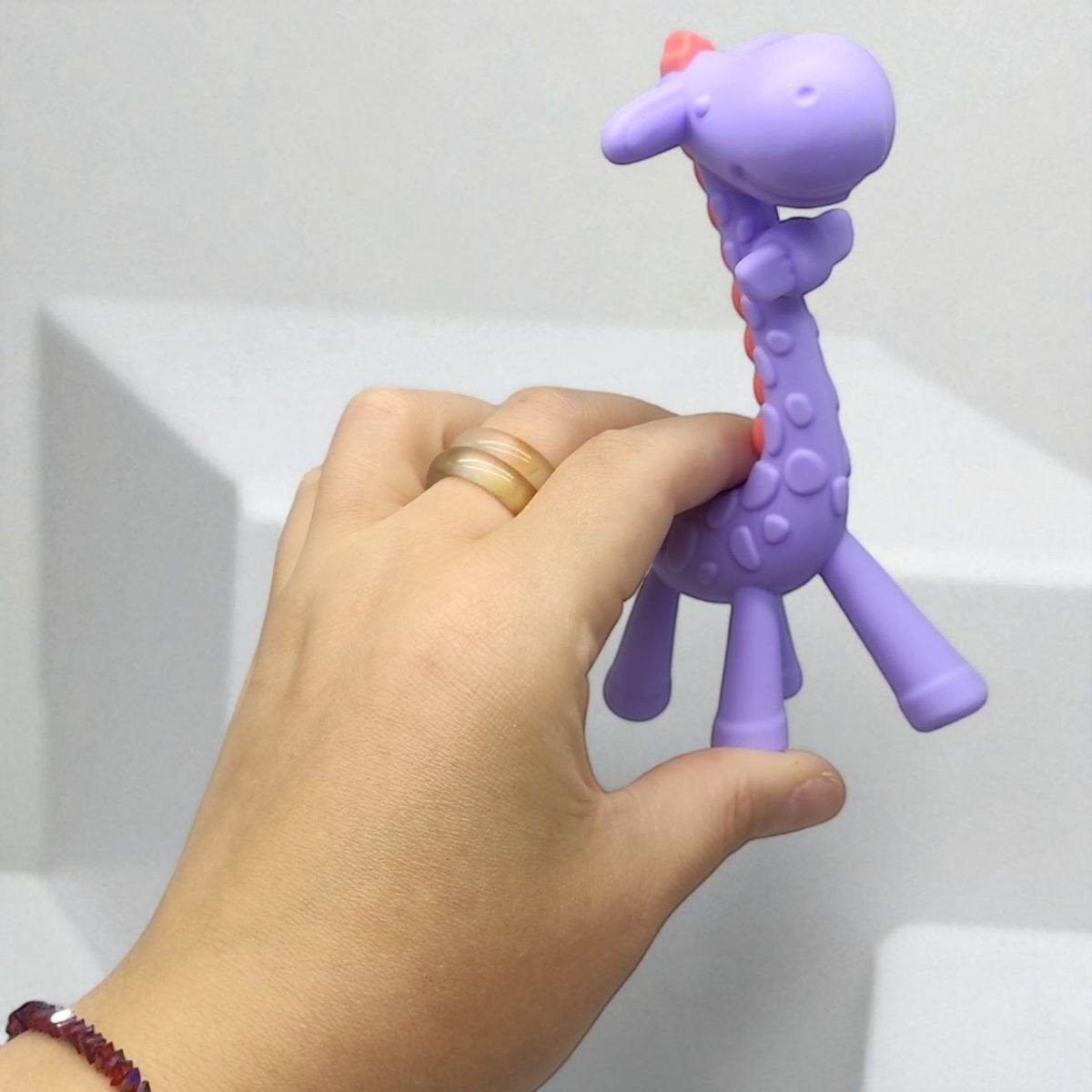 Прорізувач для зубів виконаний у вигляді миленького жирафа. Призначений для дітей старше 3-х місяців. Міцний, гнучкий та абсолютно безпечний. Використовується в період прорізування зубів, для заспокоєння чутливих ясен малюка. Зручна форма дозволить дитині зручно тримати прорізувач навіть однією рукою. Прорізувач потрібно постійно мити до та після використання.