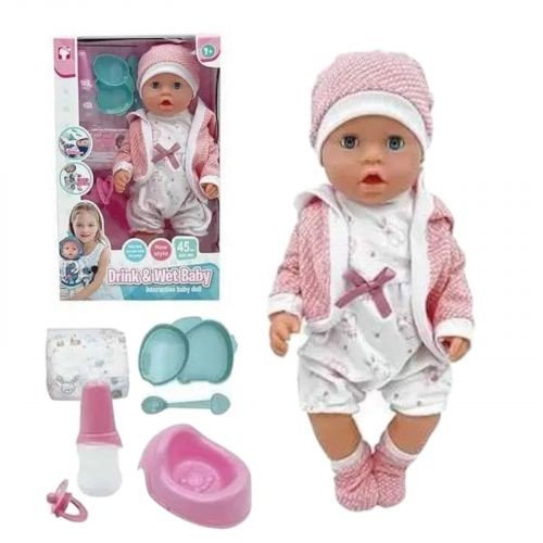 Пупс висота 45 см, пʼє з пляшечки, ходить на горщик, заплющує очі, знімний одяг, аксесуари, в коробц