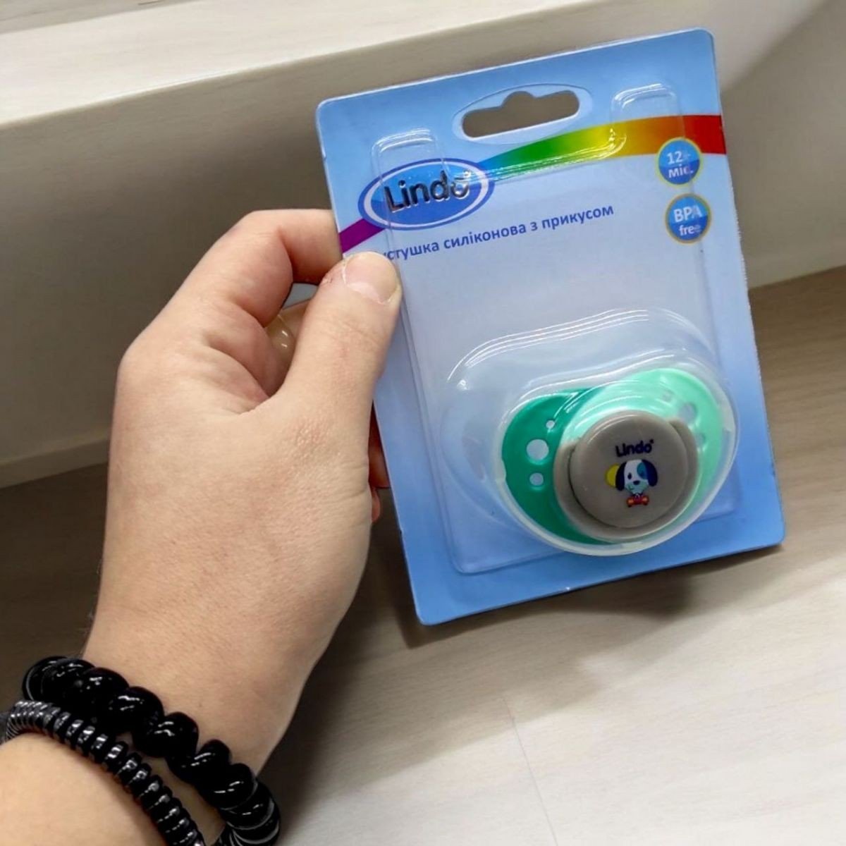 Пустушка мʼяка і абсолютно безпечна для дитини. Сприяє формуванню правильного прикусу. Упакована в пластиковий контейнер. Для дітей від 12 місяців.