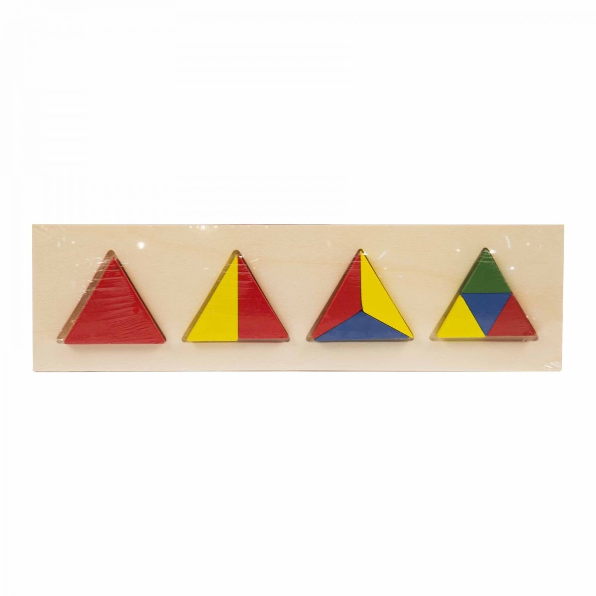 Рамка-вкладиш складається з дошки-основи, спеціальних отворів і геометричних фігур. Завдання дитини скласти з деталей квадрат, який буде включати в себе 1,2,3 і 4 частини.