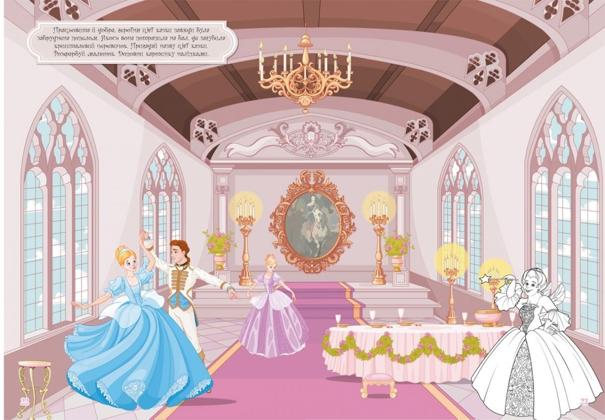 Опис Раскраска с наклейками "Казкові принцеси" (укр)