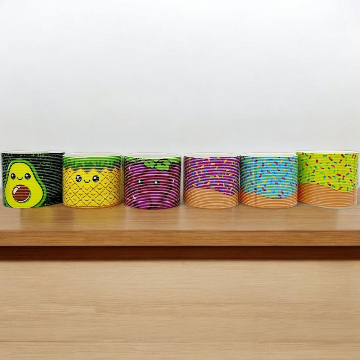 "Райдуга пружинка" - це класична іграшка-спіраль, яка заворожує своїми плавними рухами. Основна суть цієї іграшки - її здатність рухатися під дією гравітації, переливаючись з боку в бік або "крокуючі" сходами. Представлена у різних варіантах, прикрашених зображеннями різних фруктів, ягід, овочів.