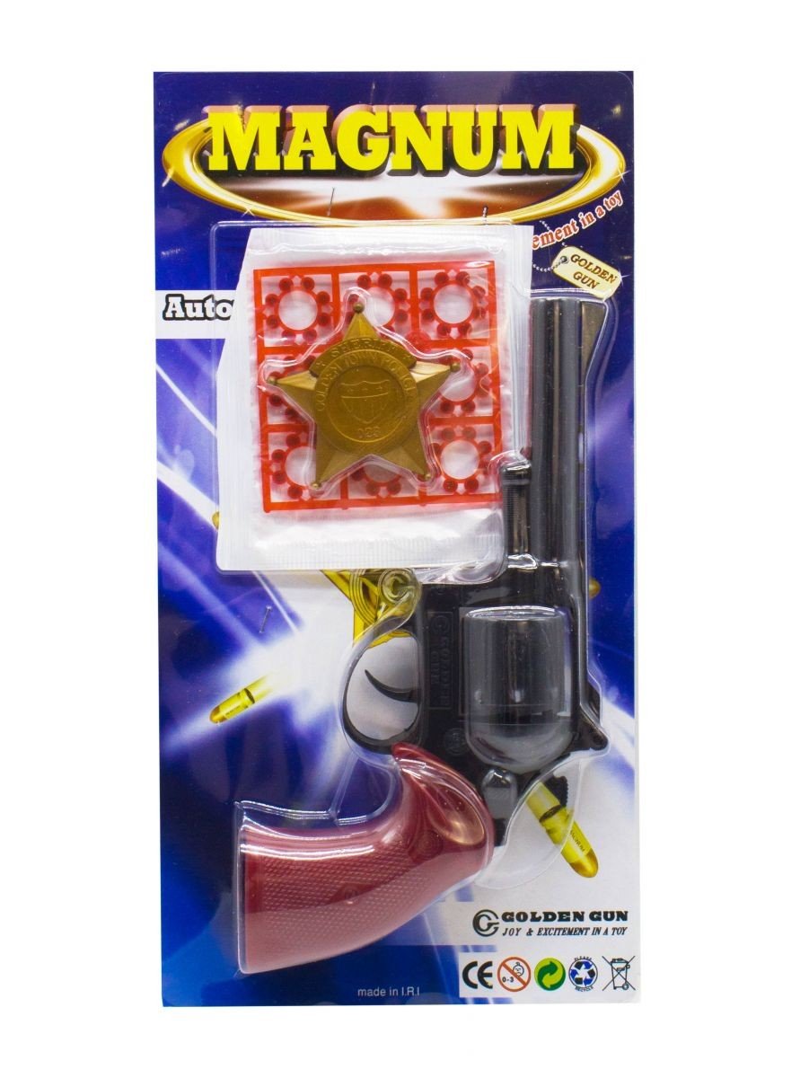 Пістолет "Магнум" з пістонами і зіркою шерифа. В одній упаковці 9 кілець по 8 набоїв в кожному.