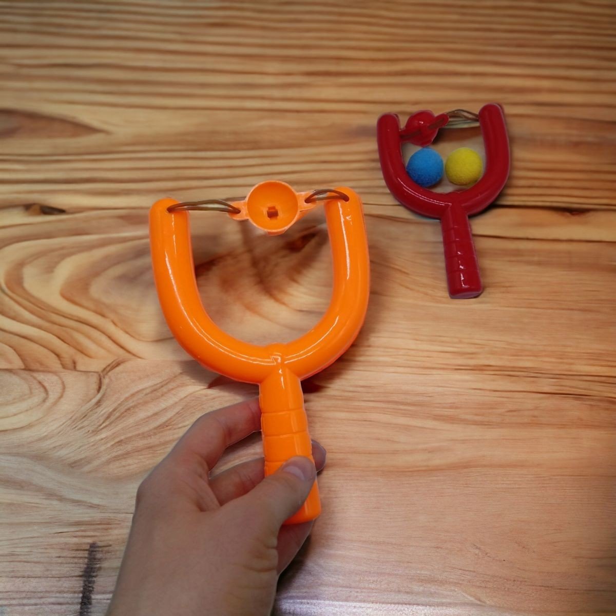 Рогатка з мʼякими мʼячиками в комплекті. Мʼячик встановлюється спеціально відведене під нього місце. Потім потрібно натягнути гумку на себе і відпустити. Стріляє на відстань до 8 метрів. У наборі рогатка та 2 мʼячики. Розмір рогатки – 12 х 18 х 2 см. Діаметр мʼячика – 3 см. Різні види в асортименті.