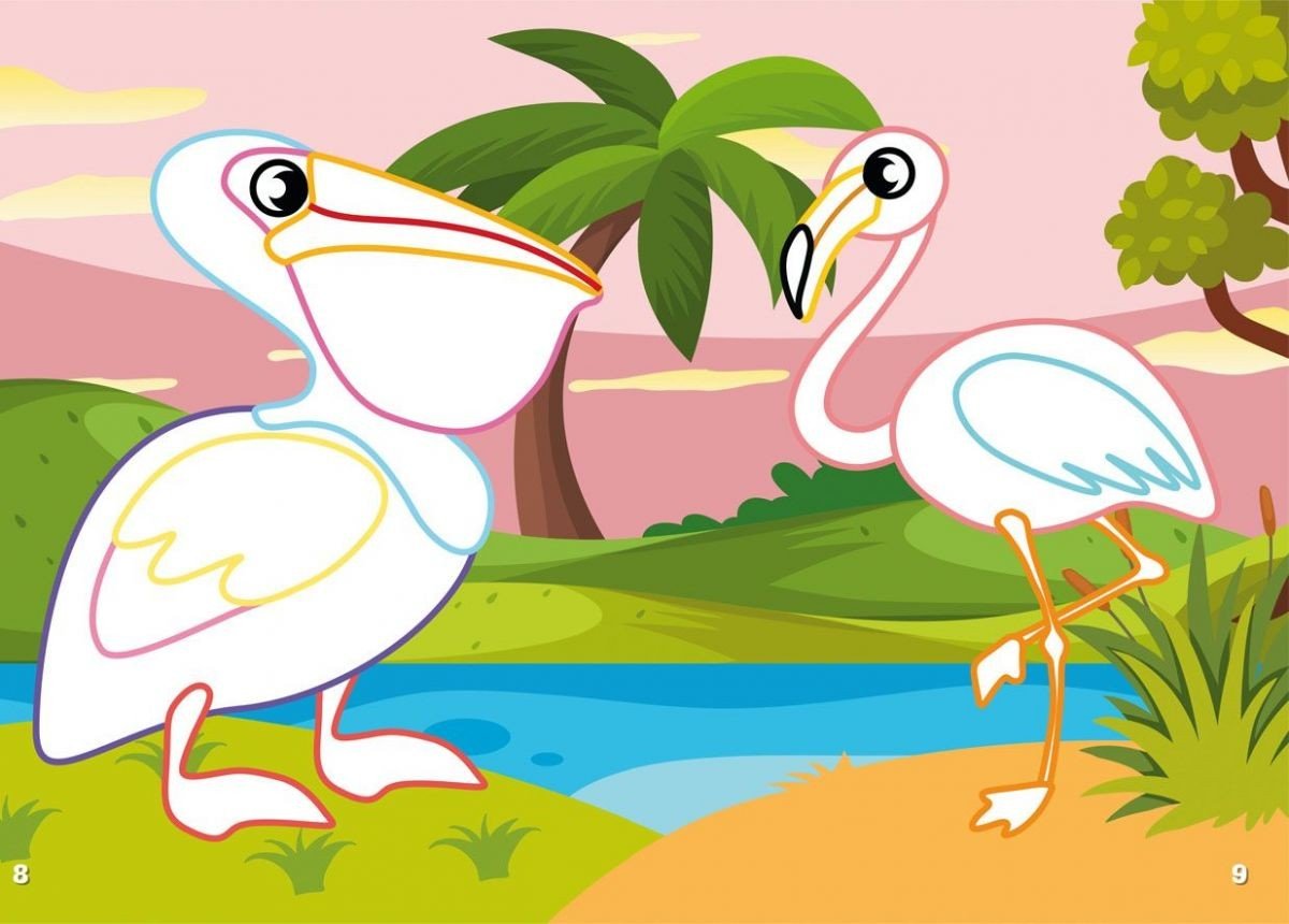 Опис Розфарбування з кольоровим контуром і наклейками "Птахи" (укр)