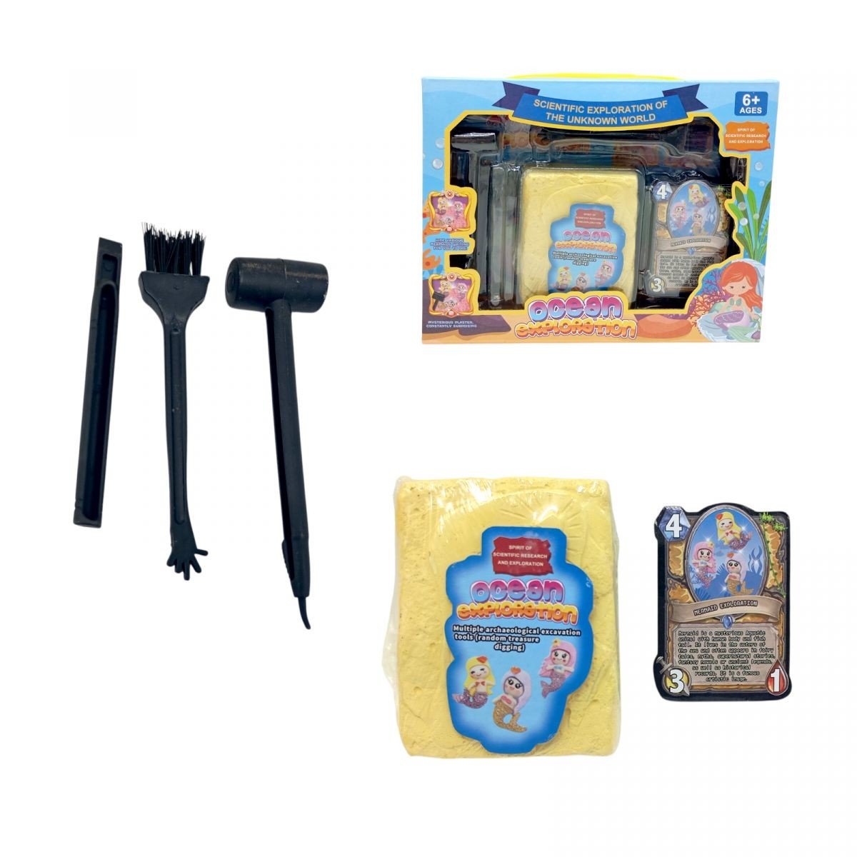 Відчуйте себе справжнім відважним археологом та вирушайте на пошуки стародавніх скарбів! Цей набір познайомить допитливу малечу із такою цікавою наукою як археологія. До набору включено гіпсовий брикет, у якому ховаються “скарби” - цікаві тематичні дрібниці, які дитині потрібно відшукати за допомогою інструментів, які теж включені до набору. Аби трохи полегшити задачу й позбутися пилу, брикет можна змочити водичкою. До набору включено інструменти для проведення розкопок, “скарби” набору ховаються у гіпсовому блоці. В комплекті присутня чарівна картка що розповідає історію про дивовижний скарб.