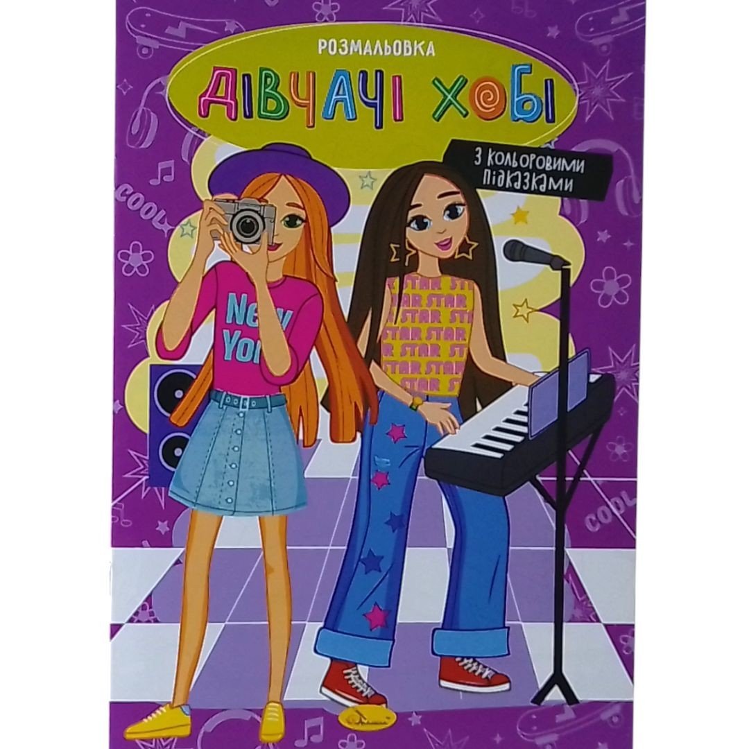 Опис Розмальовка з кольоровими підказками "Дівчачі хобі"