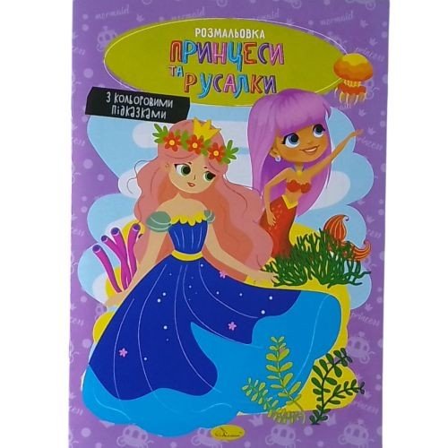 Розмальовка з кольоровими підказками "Принцеси та русалки"