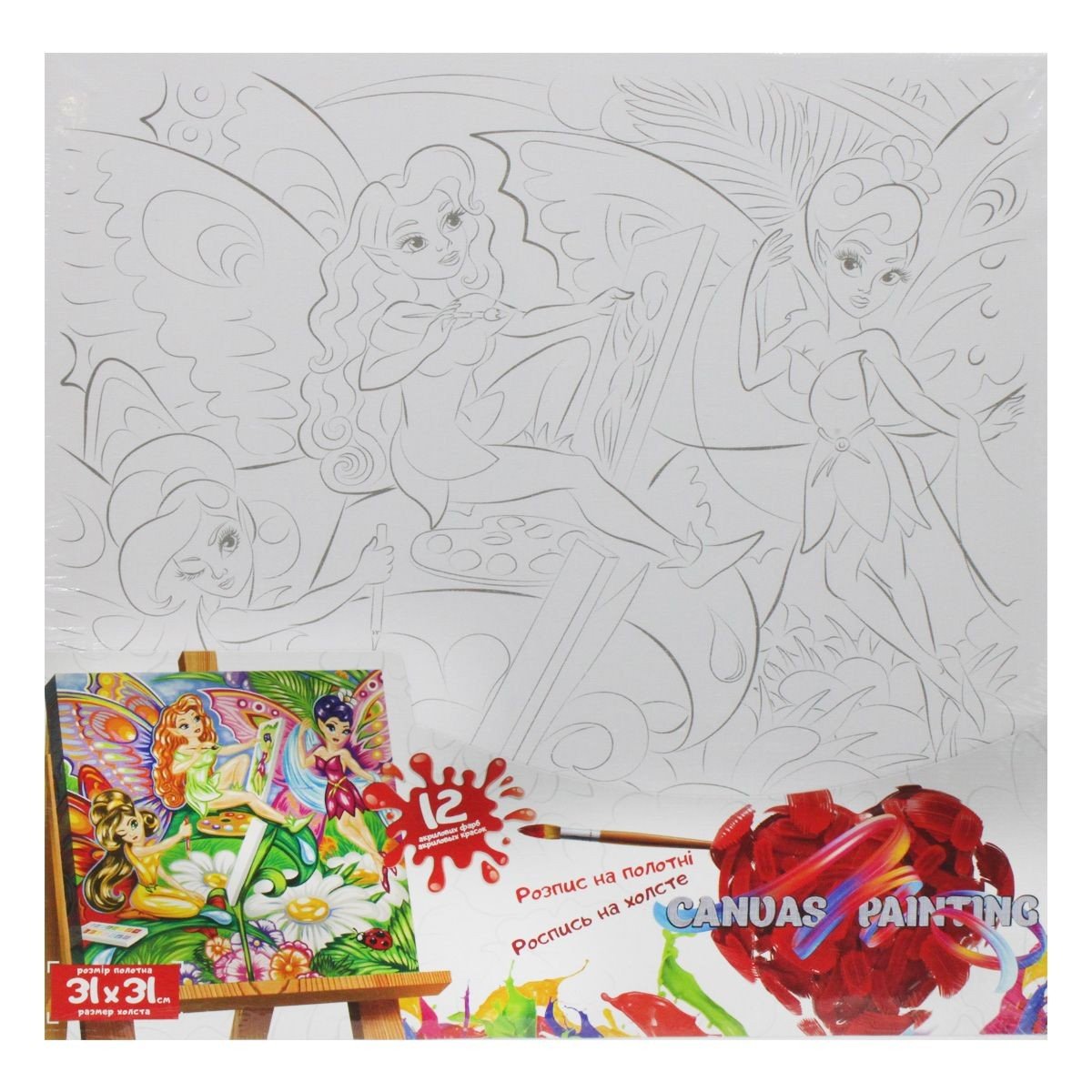 Комплектація: Полотно на підрамнику, 12 фарб, пензлик, інструкція
