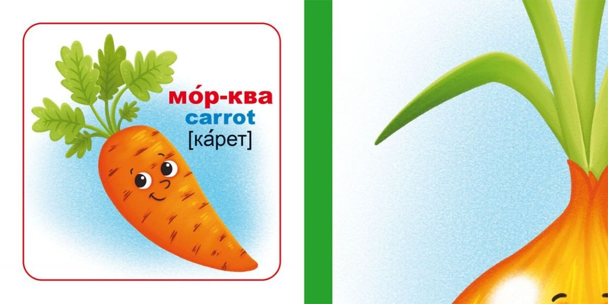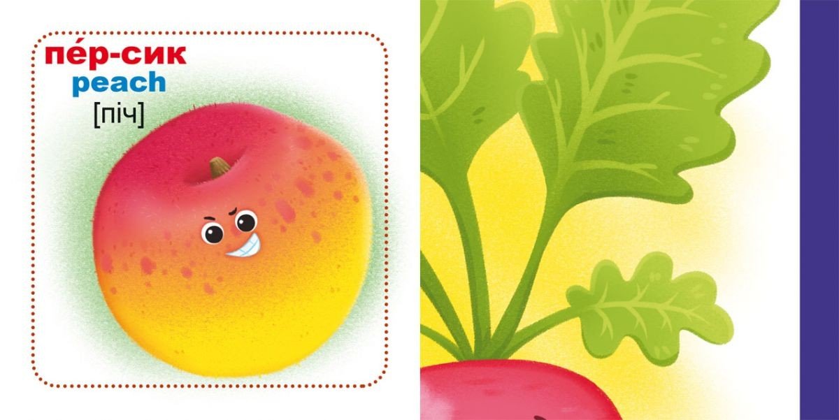 Набір розумних карток, які допоможуть малюкові дізнаватися назви різних фруктів і овочів за допомогою гри. Картки на двох мовах і з транскрипцією (укр, англ).