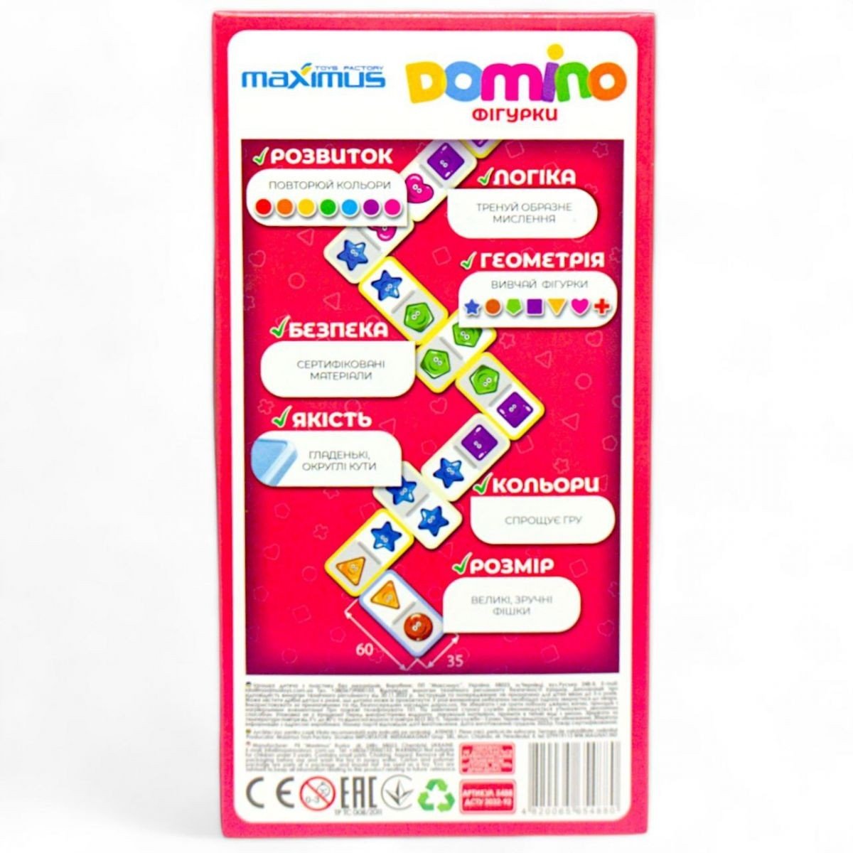 Опис Розвиваюча гра "Доміно. Геометричні фігури (+ комплект наліпок для фішок)