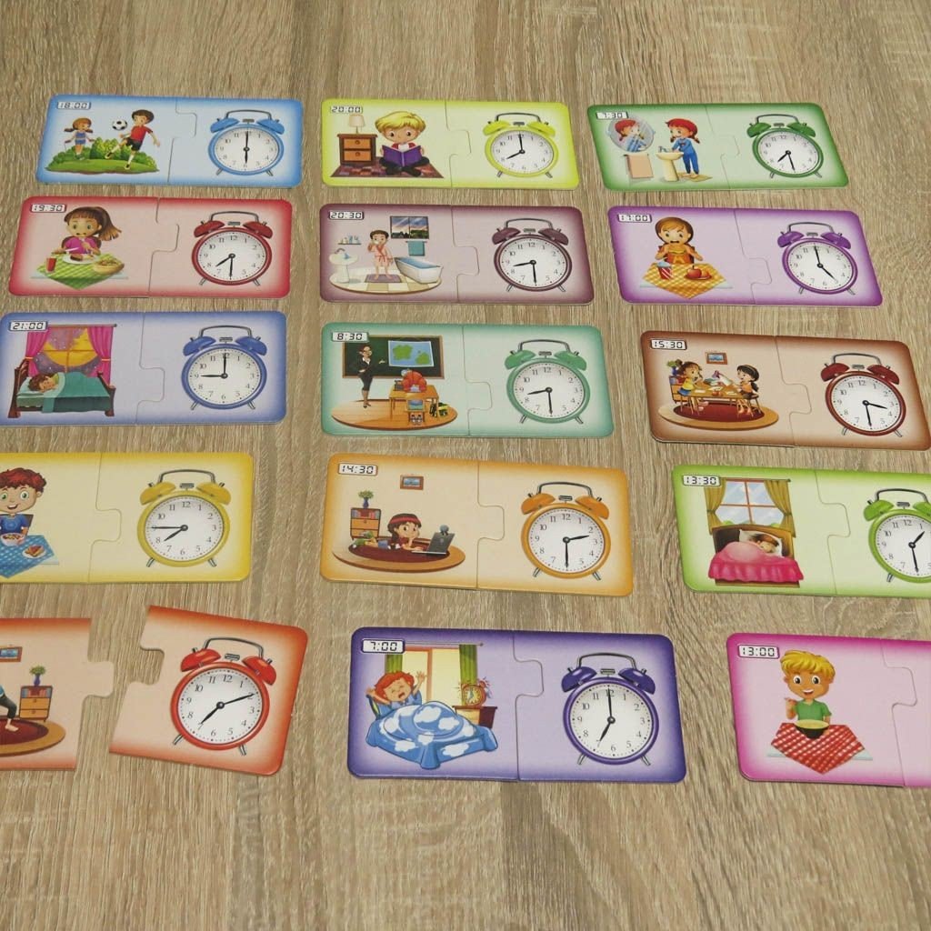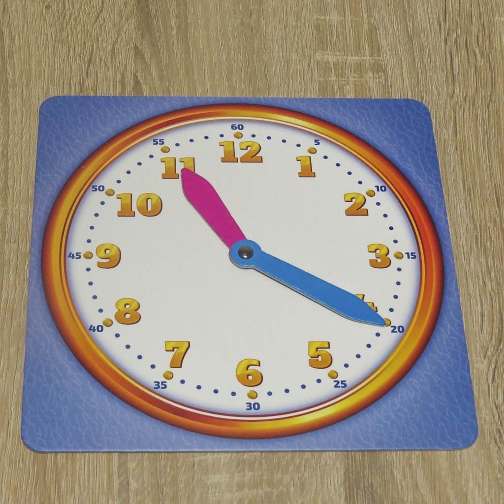 Бренд: Artos games Упаковка: Коробка Колір: Різнобарв'я Вага з упаковкою: 450 г Габарити в упаковці: 35 x 5.5 x 28 см Габарити без упаковки: 35 x 6 x 28 см Країна виробник: Україна Матеріал: Комбінований Комплектація: 15 карток з малюнками (30 елементів), циферблат зі стрілками, планшет для відображення часу електронного годинника, 32 цифи, 2 жетона, 8 жетонів-годин, 16 карток-завдань (російською та українською мовами), правила