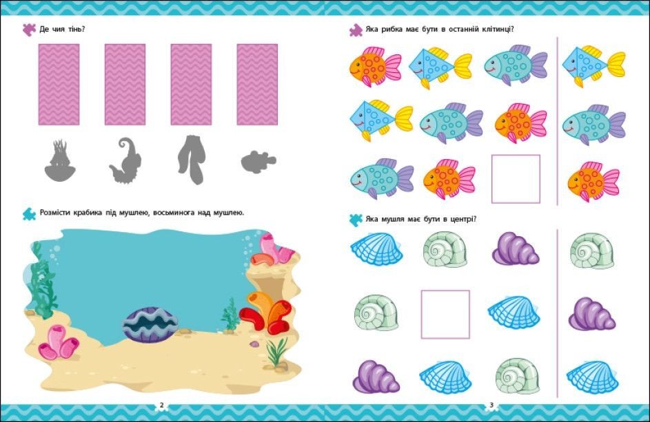 Опис Розвиваюча книжка "Логіка з наклейками: Хто під водою?" (укр)
