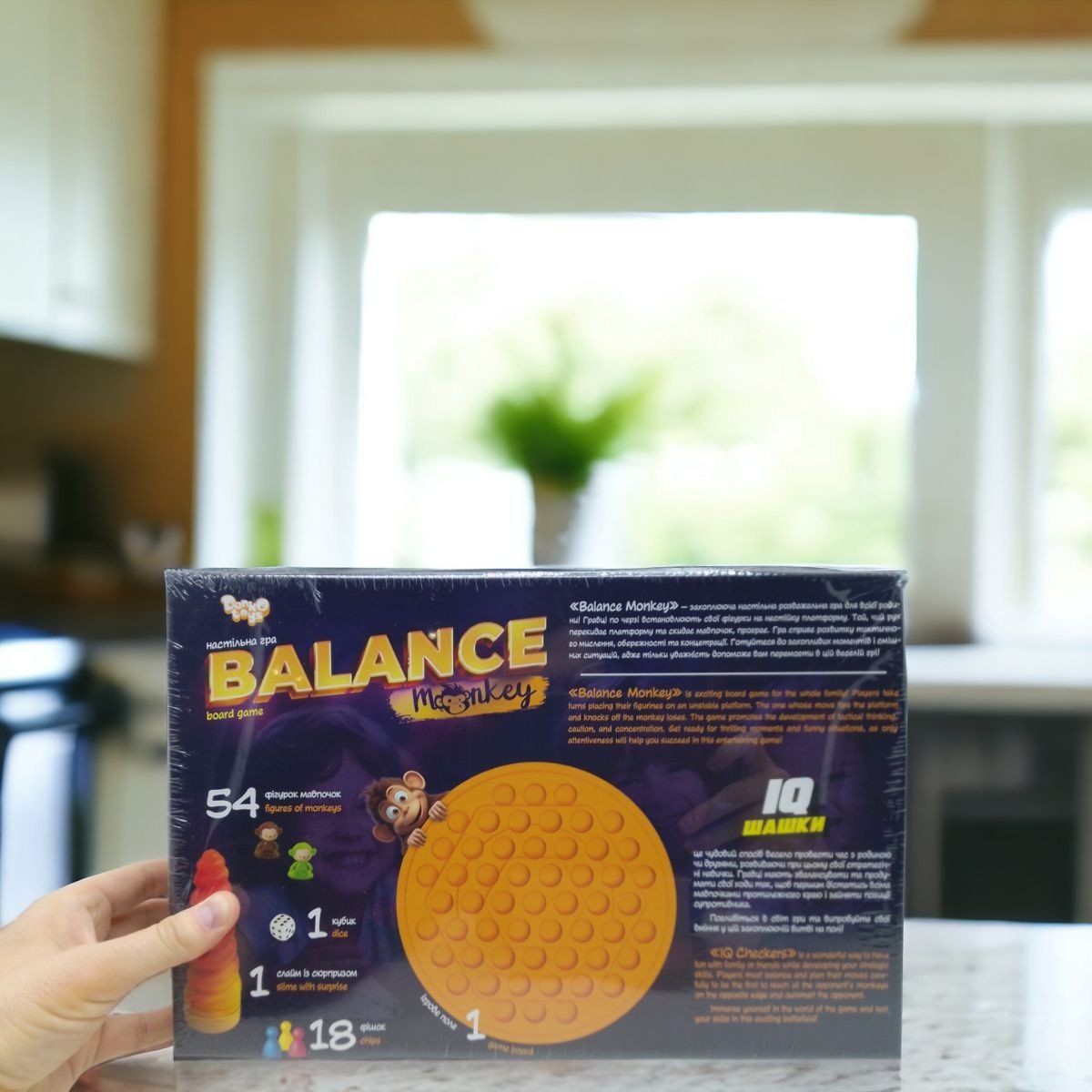 Balance Monkey - захоплююча настільна розважальна гра для всієї родини. Гравці по черзі встановлюють свої фігурки на нестійку платформу. Той, чий рух перекидає платформу та скидає мавпочок, програє. Гра сприяє розвитку тактичного мислення, обережності та концентрації. + гра IQ шашки - це чудовий спосіб весело провести час з родичами та друзями, розвиваючи при цьому свої стратегічні навички. Гравці мають збалансувати та продумати свої ходи так, щоб першим дістатися всіма фішками протилежного края і зайняти позиції суперника. Слайм з сюрпризом в комплекті.