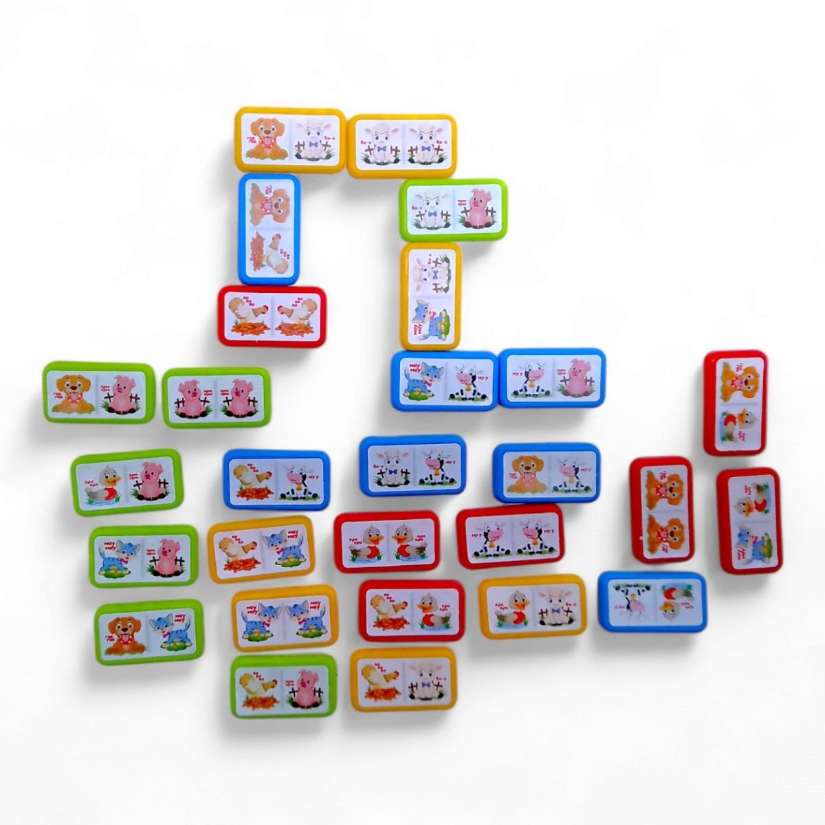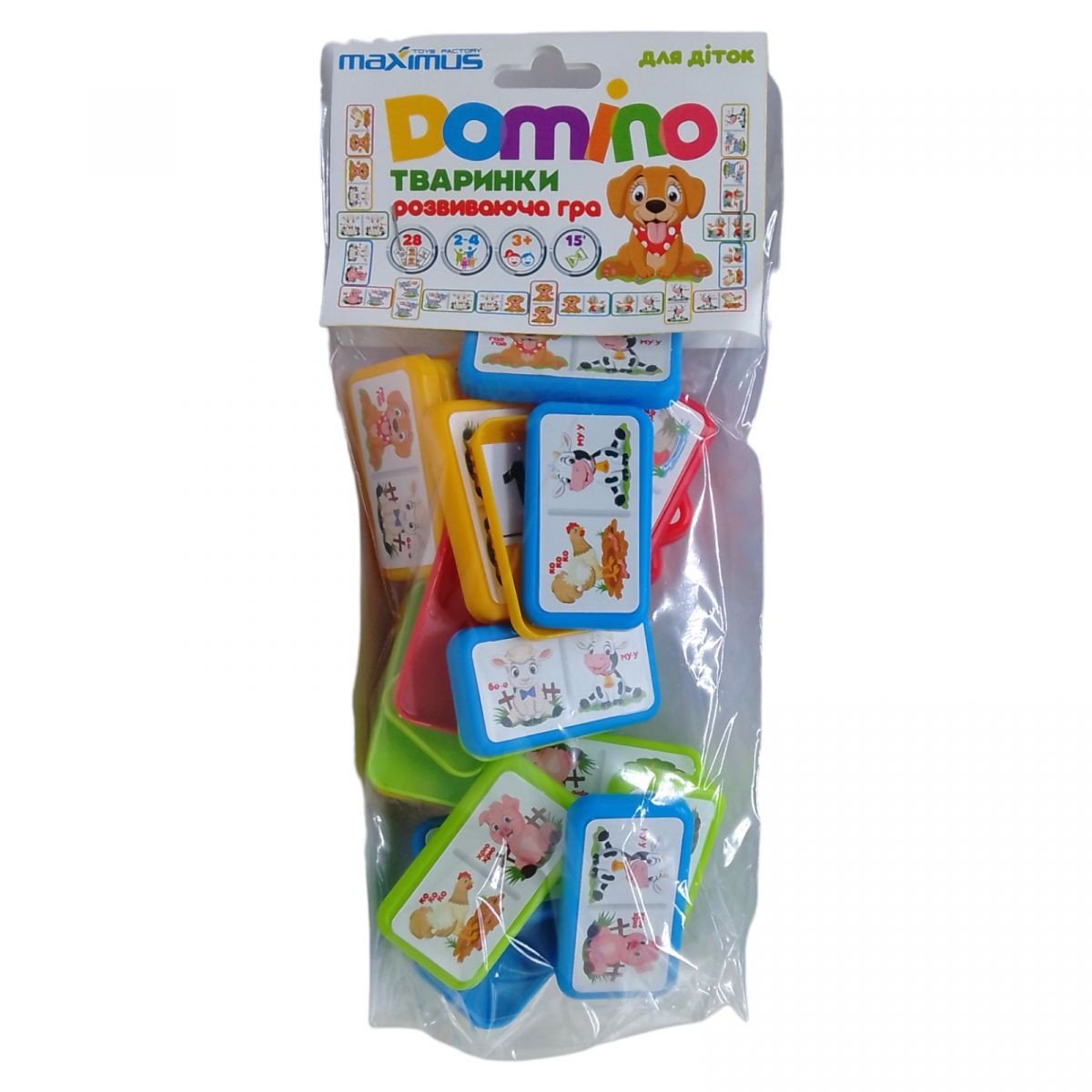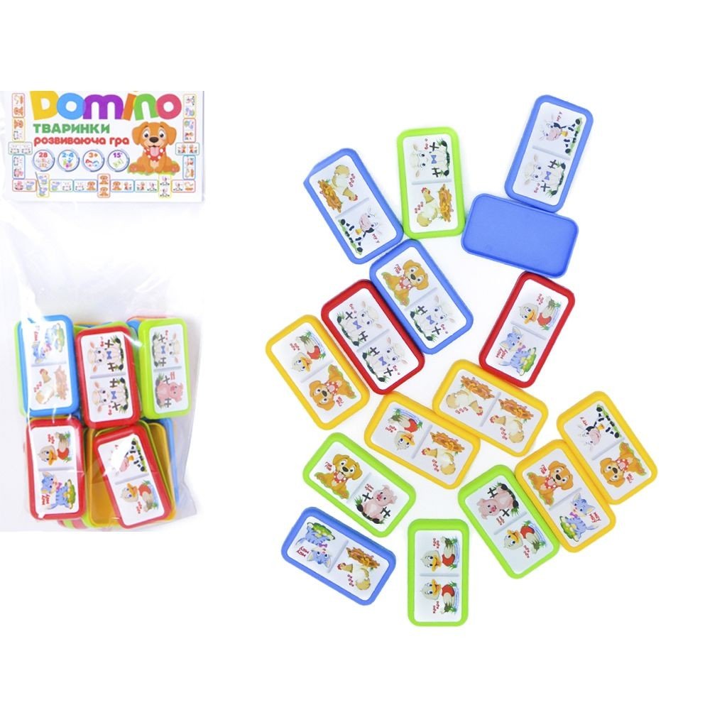Дитяча гра "Доміно". Правила гри стандартні: виграє той гравець, який першим позбавиться кісток. Інші гравці підраховують всі картинки на своїх кістках: одна картинка - 1 очко. Кістка, на якій малюнок повторюється – 4 очки. Програє той, хто має більше очок. У комплекті: 28 кістяшок, які виготовлені із легкого пластику. Розмір кісточки: 6х3 см.