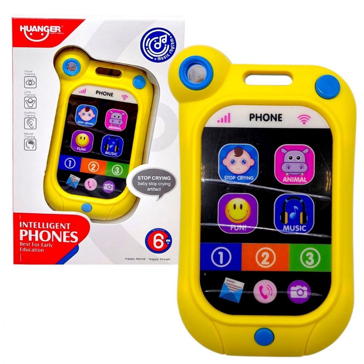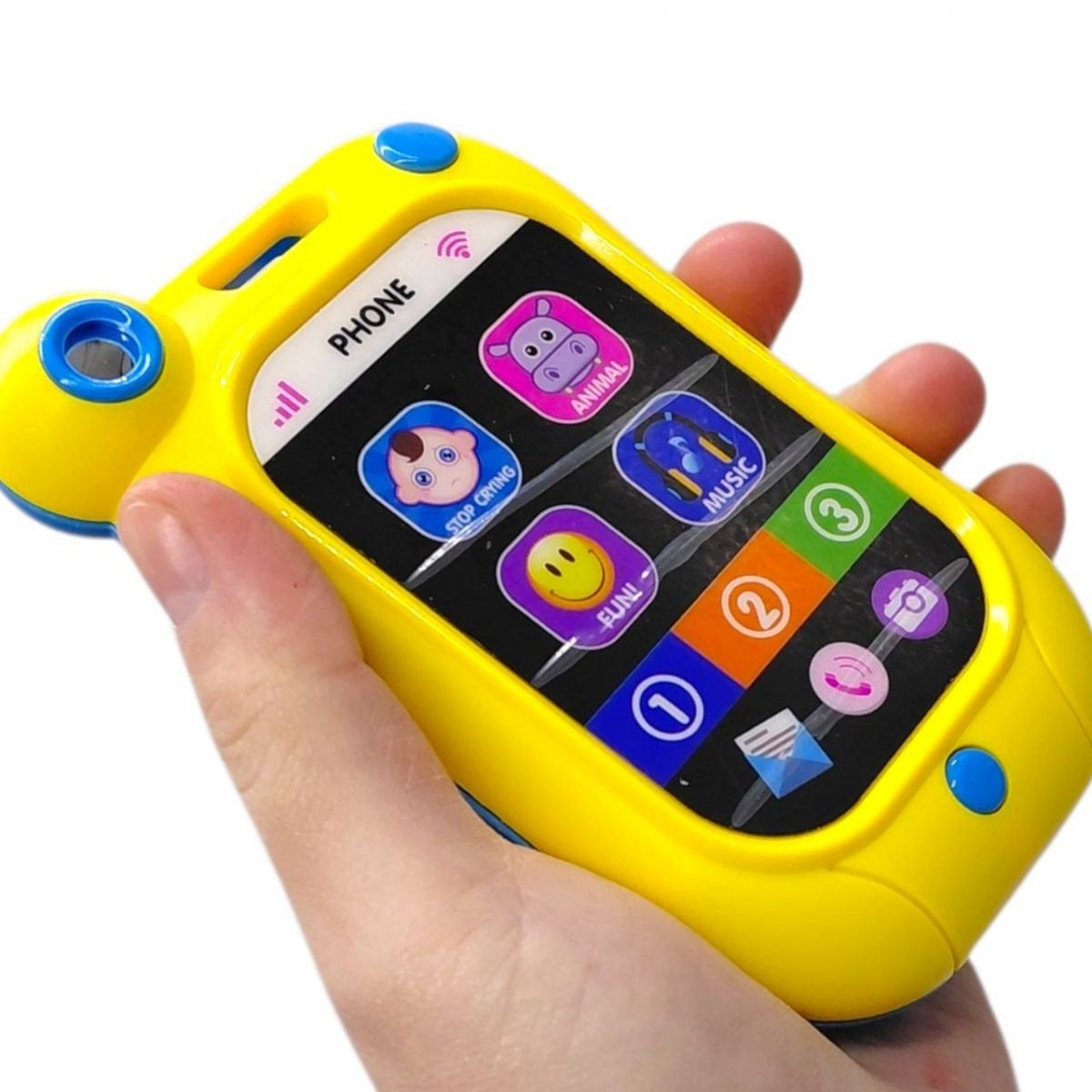 Розвиваючий телефон виконаний у формі смартфона з яскравим корпусом та великими кнопками. Під час натискання відтворюються звуки та мелодії, а світлові елементи привертають увагу дитини.