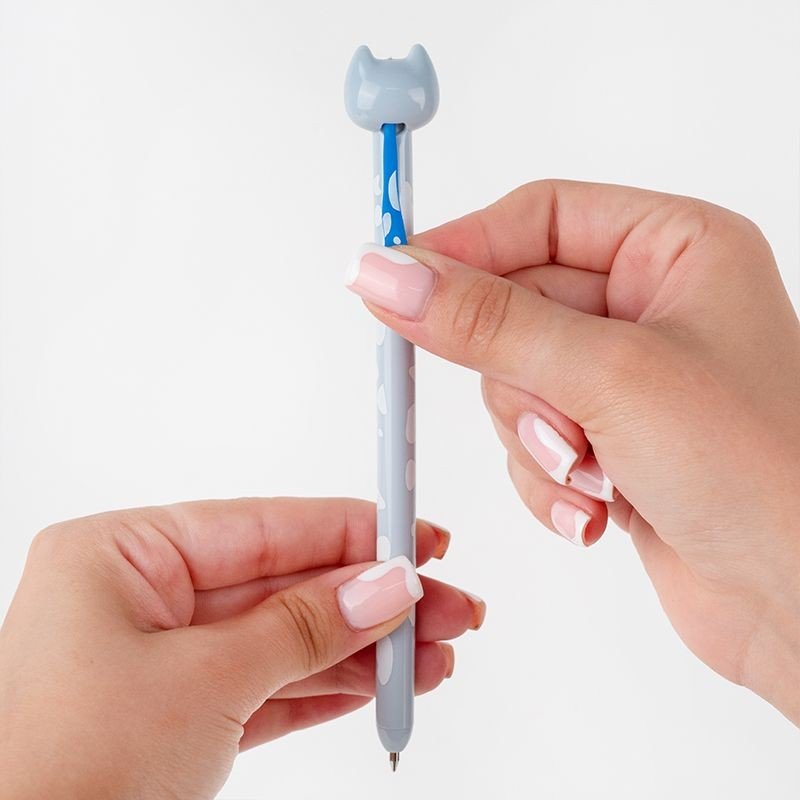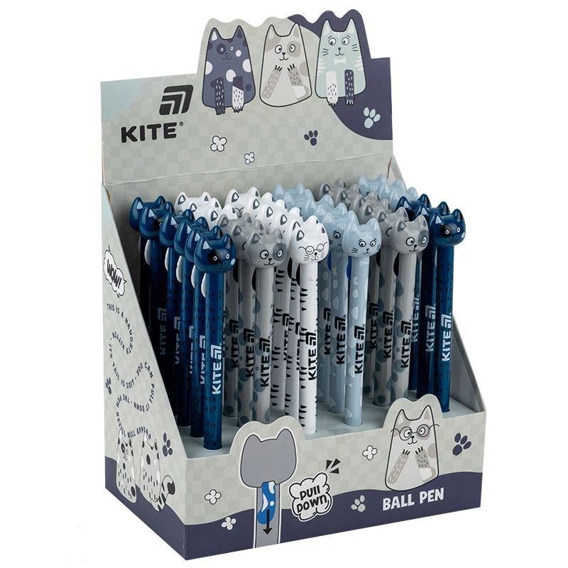 Ручка кулькова автоматична Kite K25-028-1 Funny cat — це не просто канцелярія, а веселий настрій на кожен день! Особливості: • сині кулькові чорнила — чіткі, охайні, рівномірні; • автоматичний механізм — потягни котика за хвостик, щоб почати писати; • пишучий вузол забезпечує плавне письмо без плям і проґалин; • легкий, міцний корпус із первинного пластику; • яскравий дизайн із милим котиком — для гарного настрою та натхнення.