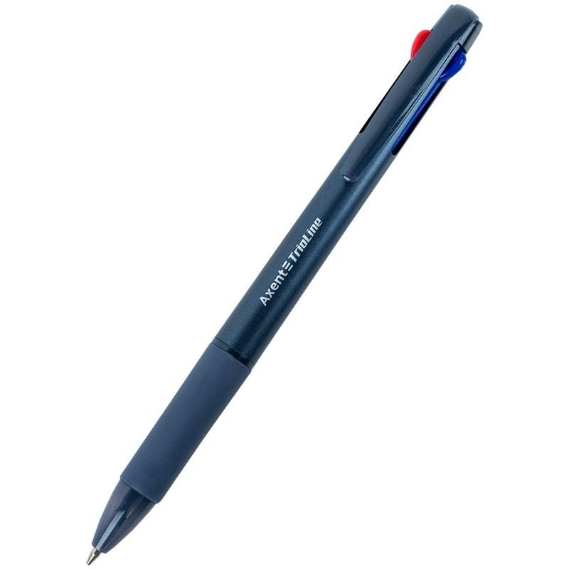 Ручка кулькова автоматична Axent AB1105-A TrioLine, 3-в-1 – це зручний, якісний і багатофункціональний інструмент, який економить ваш час і простір у пеналі чи сумці, адже замінює одразу три окремі ручки. Особливості: • 3-в-1: три стержні різних кольорів (синій, червоний, чорний) для максимальної зручності; • якісний пишучий вузол Premec; • лаконічний сучасний дизайн; • міцний пластиковий корпус; • гумовий грип для зручності; • автоматичний механізм перемикання стержнів; • стержень має довжину 97 мм і пишучий вузол - 0,7 мм. Довжина написання 900м.