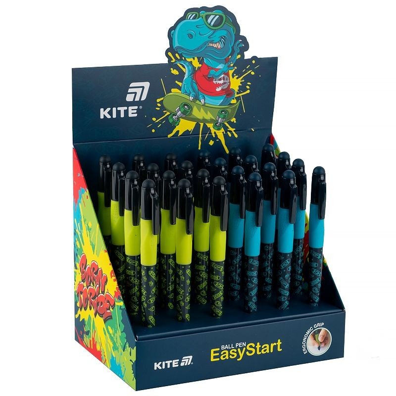 Ручка кулькова Kite в пластиковому корпусі зі зручною областю тримання, ручка не ковзає і рука не так втомлюється під час писання. Чорнила Dokumental, пишучий вузол Premec. Ручка кулькова пише плавно, легко і без пропусків, не маже і не дряпає аркуші. Пишучий вузол 0,7 мм залишає на папері тонкий охайний слід. Чорнила мають синій колір. Рекомендовано дітям дошкільного та шкільного віку.