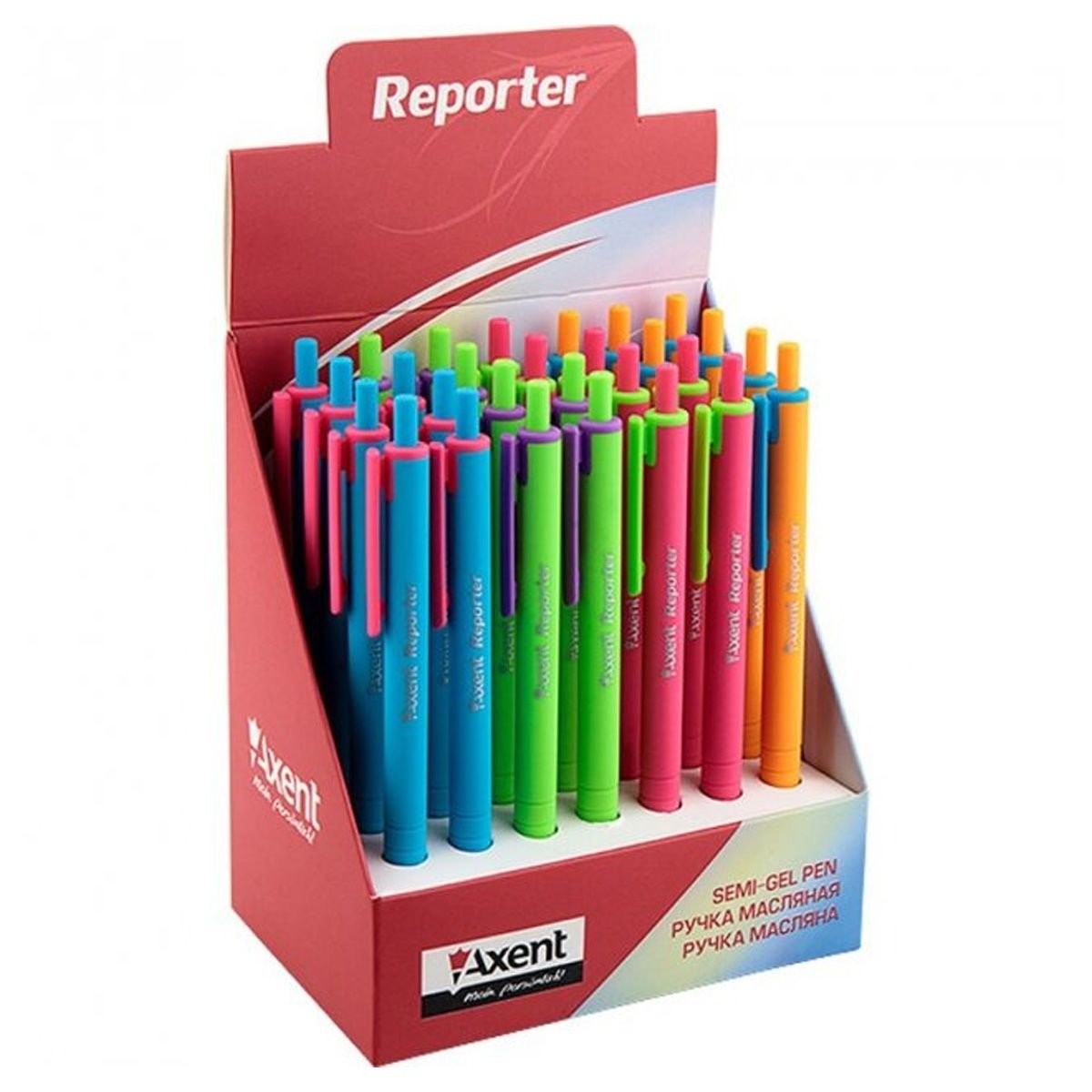 Автоматична масляна ручка, пише синім чорнилом. Різні кольори в асортименті. Довжина: 14 см. Ціна вказана за одну ручку.